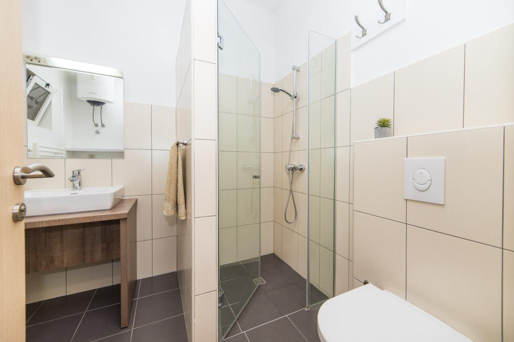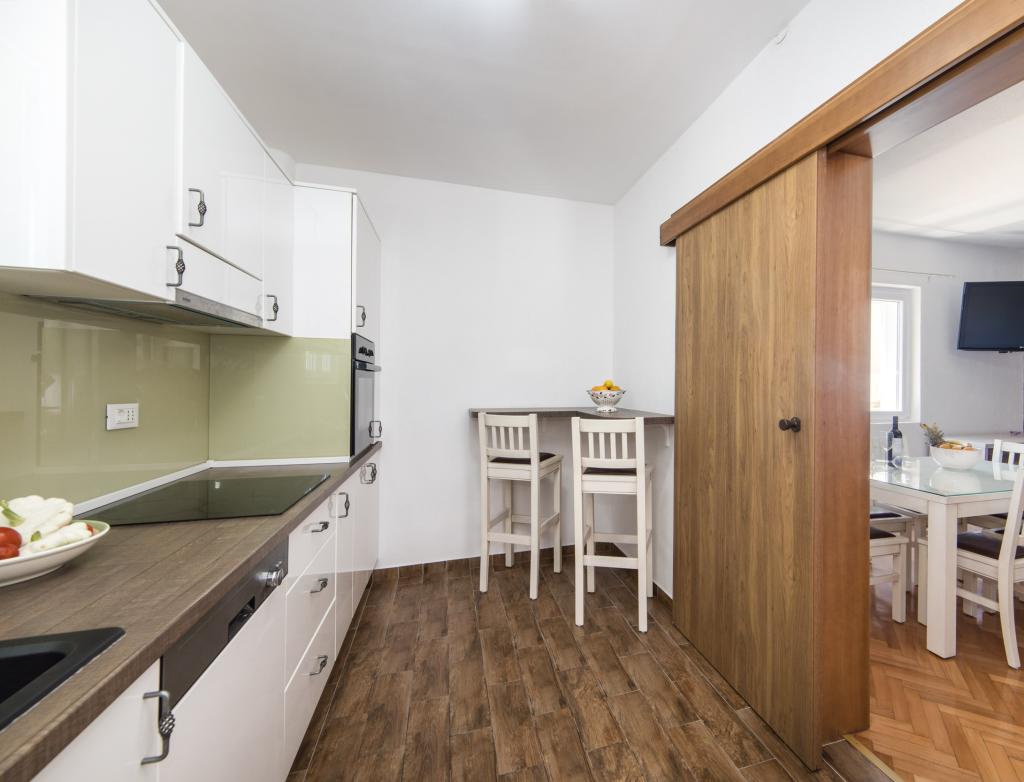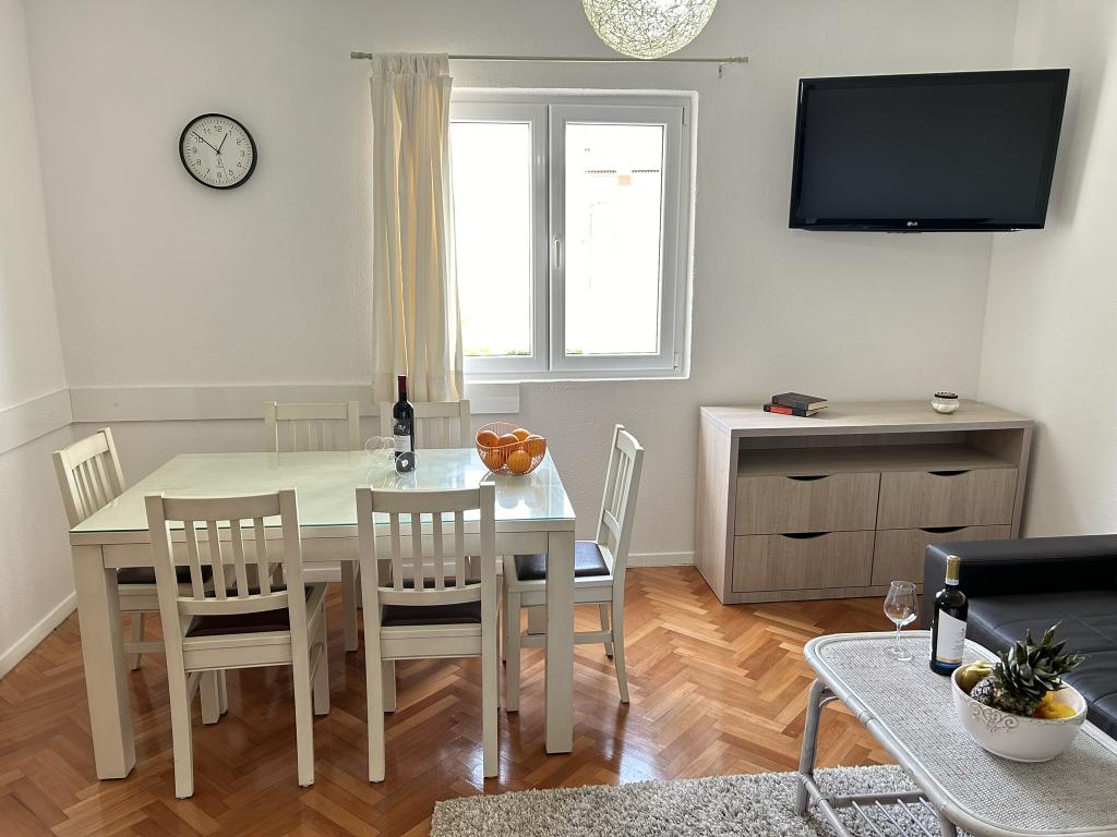 Smještajna jedinica identična fotografijama koje su ponuđene. Blistavo čisto što dokazuje da se konstantno održava i uređuje, domaćini pristojni i veoma srdačni, tu su kada ih trebate. Kuhinja puna posuđem i priborom, kupaonice prostrane i čiste, ležajevi udobni; noću nije bučno, niti vruće spavati. Parking za dva vozila. Smještaj preporučujem obiteljima sa djecom i prijateljima. MI se vraćamo godinama...