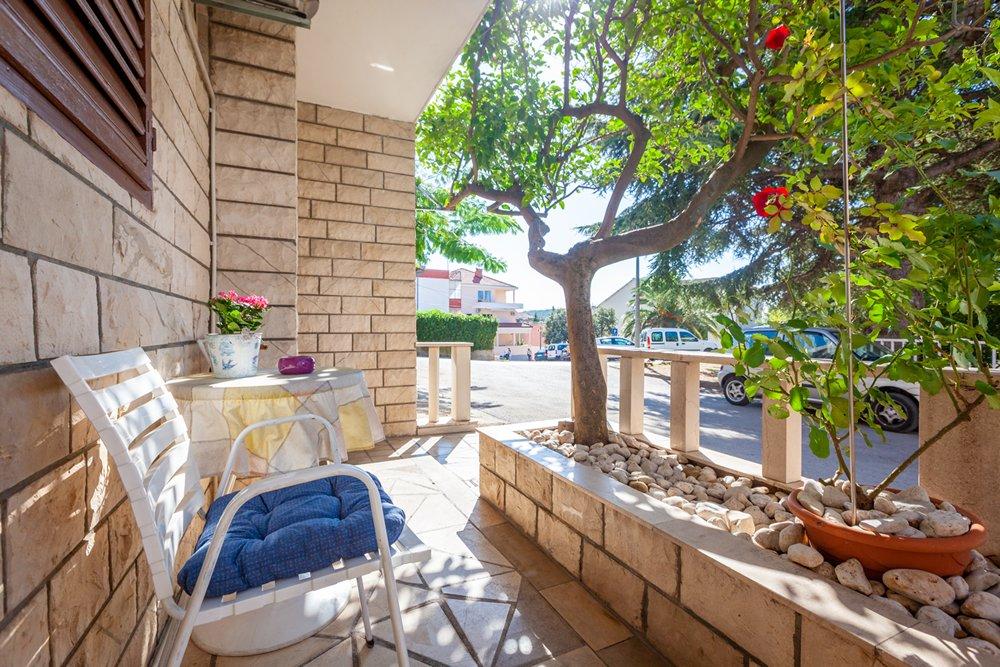 Obiteljska kuća u centru grada, u lijepoj i mirnoj ulici! Velika zajednička terasa ima pogled na more i grad. Sve smještajne jedinice imaju klimu, TV SAT, WI-FI i osiguran parking ispred kuće, a sve je uz boravišnu taxu uključeno u cijenu. Automobil vam neće biti potreban jer je sve na dohvat ruke. DOBRO DOŠLI!