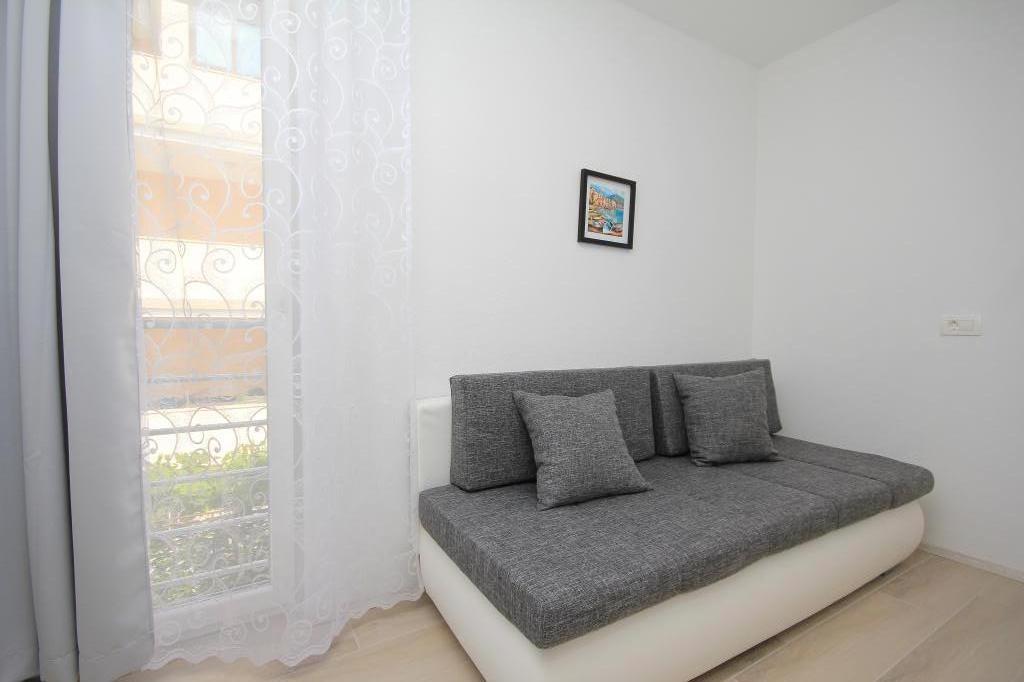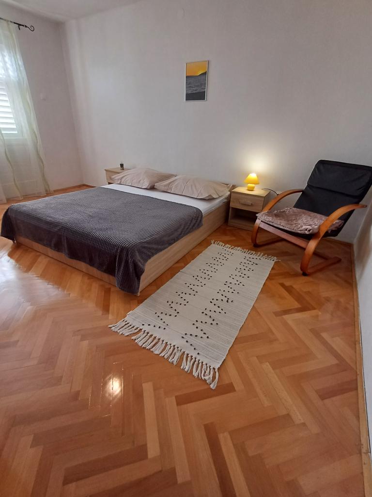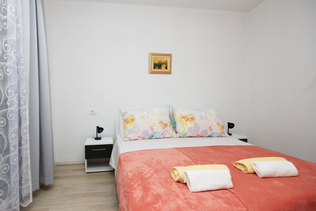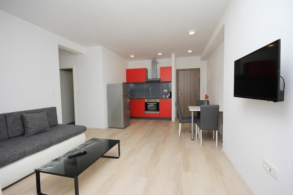 Apartman se nalazi u mirnom dijelu grada,sa besplatnim parkingom,udaljen od mora 2 minute na noge.U blizini se nalaze svi sadržaji,kao tržnica,market,restoran,pekarna,bankomat,ljekarna.