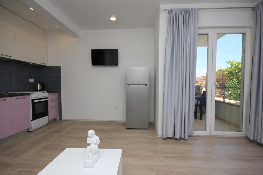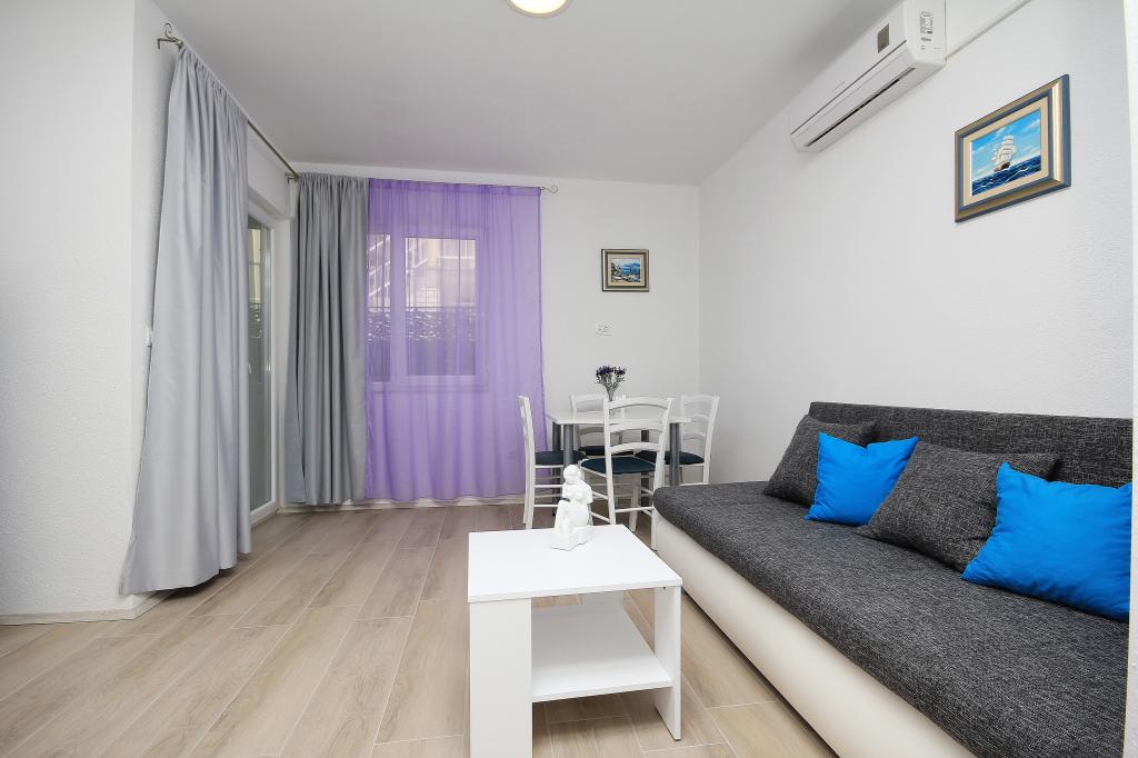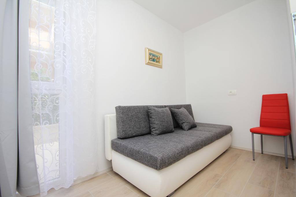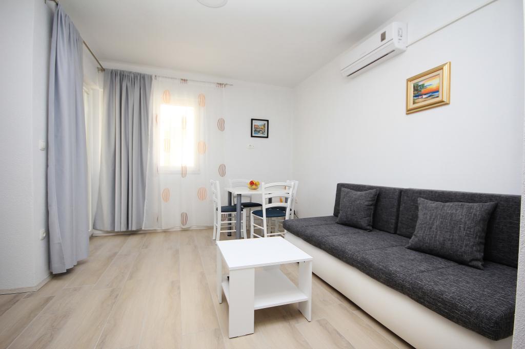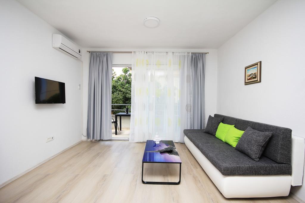 Apartman se nalazi u mirnom dijelu grada,sa besplatnim parkingom,udaljen od mora 2 minute na noge.U blizini se nalaze svi sadržaji,kao tržnica,market,restoran,pekarna,bankomat,ljekarna.