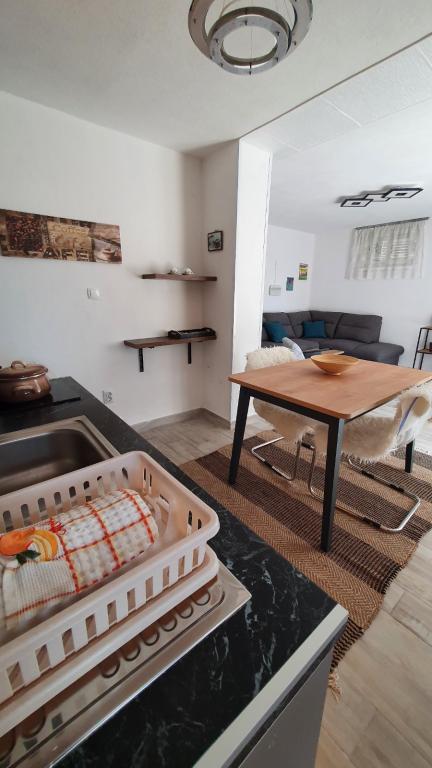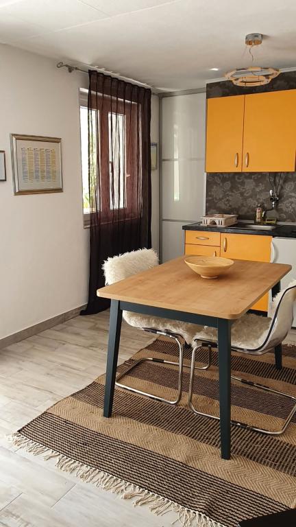 Osim što nas je dočekao dobro opremljen, ugodan i čist apartman. Dočekala nas je divna i topla Maja. Simpatična i ljubazna vlasnica, koja je kroz jednostavnu i brzu komunikaciju brinula da nam sve bude po volji. s obzirom na to da nam je boravak trajao 3 tjedna, svako malo smo dobivale nove čiste ručnike i posteljinu. Također smo imale hostesu, psa Tonku, koja nam je iznimno uljepšala boravak sa svojim dolaskom na druženje. Ako ćete negdje rezervirati apartman, to treba biti ovdje, kod Maje se vidi pravi primjer dobrog ugostiteljstva i toplog domaćinstva. Za svaku pohvalu!!