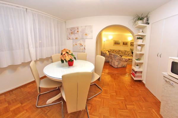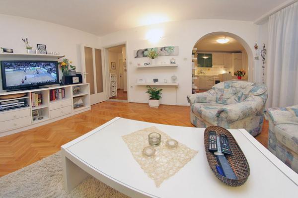 Nudimo apartman sa dvije spavače sobe,za četiri osobe,u samom centru Makarske ,te od centralne plaže 80 metara.Apartman se nalazi na trečem katu stambene zgrade koja se nalazi u mirnom okruženju,opremljen je klimatizacijom,sat-tv-om,WI-FI internetom,veš mašinom,mašinom ,za posudje ...