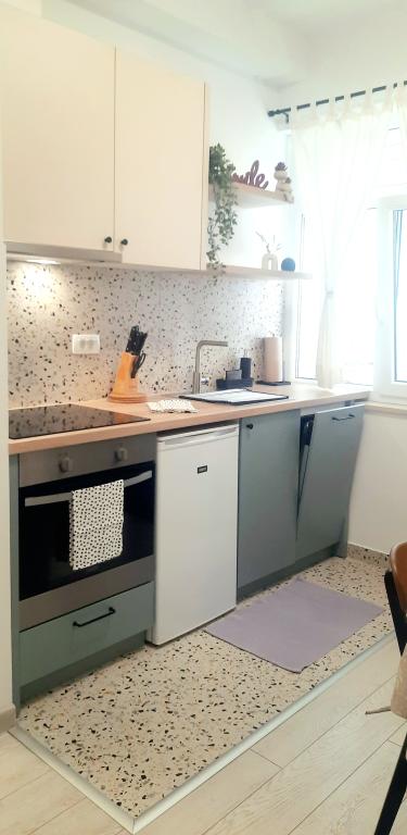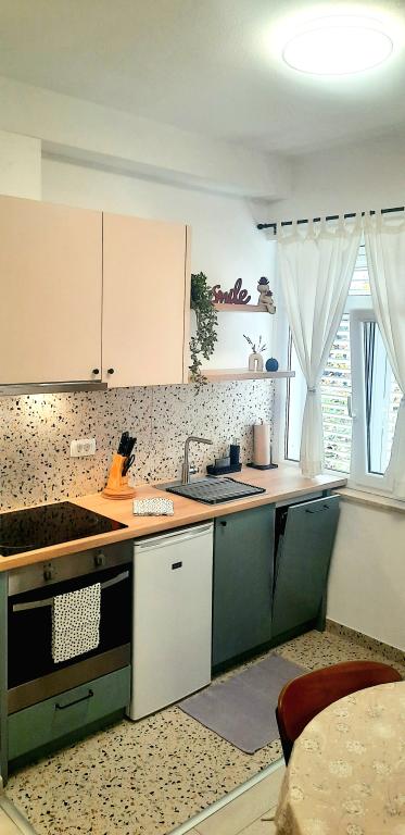 Izuzetno lijepi i vrlo čisti apartman, opremljen sa svime potrebnim za ugodan boravak dvoje ljudi s kojima može biti i beba ili malo dijete. Prostorije su baš onakve kao što su i prikazane u objavama. Bračni krevet dovoljno velik i vrlo, udoban s kvalitetnim madracem, kuhinja tko želi kuhati na odmoru, ima ama baš sve čak i suđericu. U dvorištu osiguran parking. Lokacija mirna. Do plaže, kafića, restorana pedesetak metara, riva i trgovine isto su blizu. Sve za pet, a krunu svega toga čine domaćini Martina i Ante, divan bračni par, koji su nas dočekali kao da se odavno znamo. Martina uvijek je na raspolaganju, ako što treba. Nesebično daje sve informacije, voli komunicirati s ljudima, u biti vidi se da puno truda i ljubavi ulaže da se svaki gost vrati kući s velikim zadovoljstvom. Martina, hvala Vam za onaj ogroman komad vaše torte i pruženu " prvu pomoć" kod ozljede. O, da moram i spomenuti jednog lijepog ,umiljatog mačka Peru, maskota apartmana.