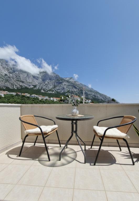 U ponudi imamo više apartmana i studio-apartmana za 2, 3 ili 4 osobe. 2,2+1,2+2 Svi imaju klima-uređaj, balkon, potpuno opremljenu kuhinju, kupaonicu, TV i Wi-Fi. Prednost smještaja je blizina najljepših plaža Makarske rivijere, bez gradske gužve. Plaže se nalaze ispod kuće i do njih je manje od 2 minute vožnje, a prva i jedna od najljepših plaža udaljena je oko 1 km. U blizini su Buba Beach, Biloševac, Cubano Beach i Cvitačka plaža. Trgovina, mesnica i kafić udaljeni su oko 300 m, restoran 100 m. Gostima je osiguran besplatan parking ispred kuće