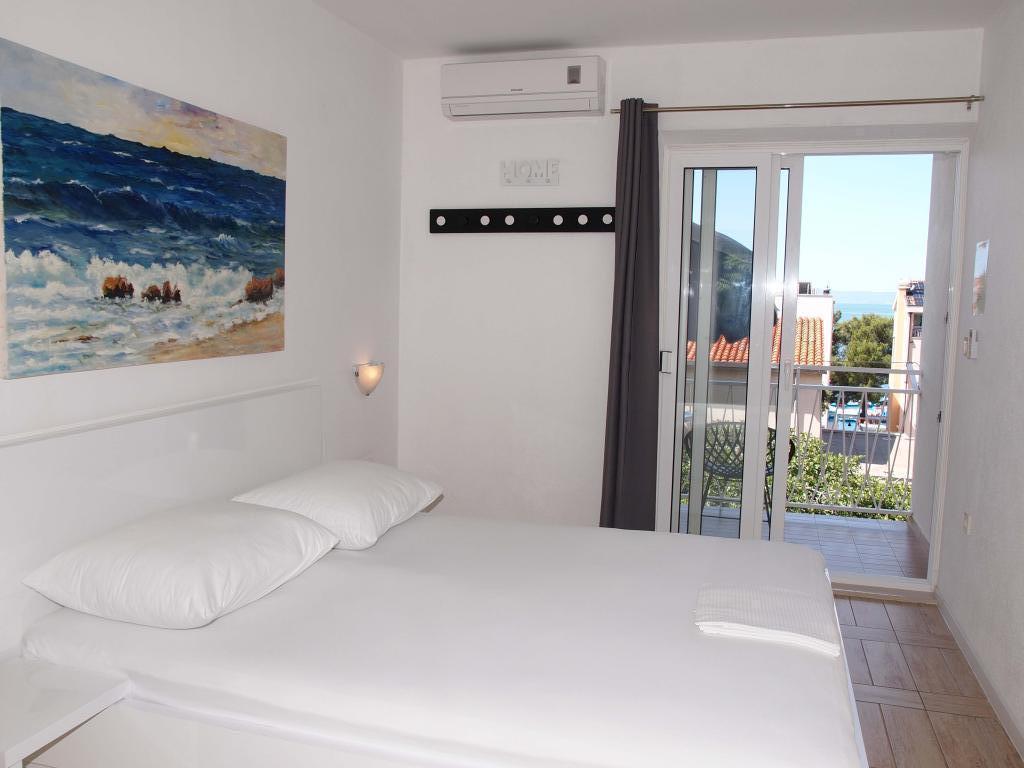 Novi i suvremeno opremljeni apartmani s pogledom na more smješteni su na mirnom najatraktivnijem dijelu Makarske između hotela Places-Dalmacija i hotela Biokovka. Udaljenost od mora i pješčane plaže 50 m. Prekrasnom šetnicom okruženom borovom šumom za 10 minuta šetnje stižete do centra grada. Uz šetnicu se nalaze brojni restorani i zanimljivi sadržaji . Gostima su na raspolaganju 4. smještajne jedinice. Dva identična Studia na 1. katu i dva identična Apartmana na 2. katu obiteljske kuće. U apartmanu postoji mogućnost dodati pomoćni ležaj za dijete.Sve smještajne jedinice imaju balkone. U svim smještajnim jedinicama kuhinje su odvojene od spavaćeg dijela.Apartmani imaju svoje vanjske ulaze koji omogućavaju potpunu privatnost. Smještajne jedinice nisu izložene ulici te gostima omogućavaju mir od ulične buke. U cijenu je uključen parking,internet klima i boravišna pristojba.