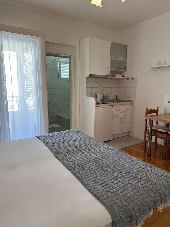 Apartmani Olga 1 nalaze se u Makarskoj, predio "Plaža" udaljeni samo 50 metara od mora i plaže. U ponudi imamo 3 apartmana koji su smješteni na 1. katu kuće. Također u ponudi imamo apartman za 4 osobe koji se nalazi u prizemlju. Svi apartmani imaju klima uređaj, vlastitu kupaonicu, opremljenu kuhinju, TV/SAT, WiFi i balkon na kojem možete provoditi vaše vrijeme. Privatni parking nalazi se u dvorištu ispred kuće. Udaljenost od najbližeg supermarketa je 100 metara, a restorani i kafići su udaljeni 50 metara i nalaze se na plaži. Udaljenost od centra grada je 5 min pješice. Apartmani se nalaze u mirnom i tihom okruženju.