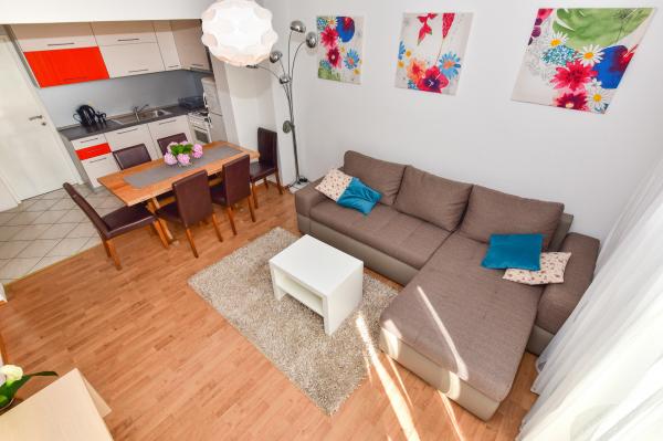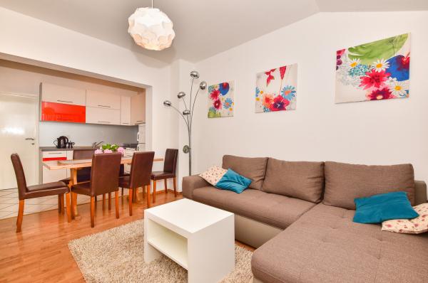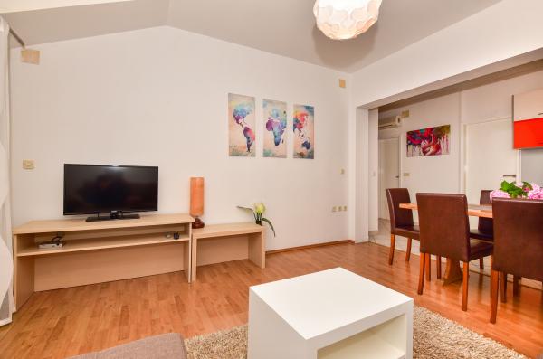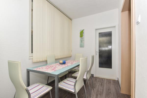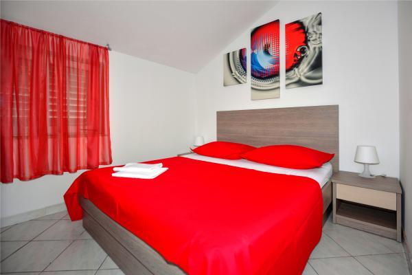 Apartmani su smješteni u obiteljskoj kući, sa osiguranim parkingom, mogućnost korištenja garaže, sa prekrasnim vrtom i roštiljem, besplatni internet. Apartman 4 1 (36454) kompletno je opremljen, s klimom i televizorom te dvije odvojene sobe, svaka soba ima svoje vlastito kupatilo i balkon, te se nalazi na prvom katu kuće. Apartman 4 1 (40512) kompletno je opremljen, s dvije odvojene sobe, jednim kupatilom i velikim dnevnim boravkom. Komforan, te se nalaz na trećem katu kuće. . Objekt je udaljen 5 minuta hoda od plaže.