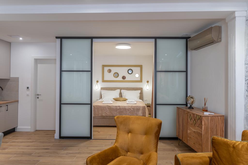 Apartman "Petra" i apartman Rustic nalaze se na vrlo atraktivnoj lokaciji u centru grada do koje dopire minimalna gradska buka. Apartmani su okruženi svim važnim sadržajem za što jednostavniji i ugodniji boravak.Gradski kolodvor se nalazi svega dvijestotinjak metara od apartmana.U istoj ulici se nalaze i dva supermarketa a nasuprot apartmana poznata drogerija "DM"U istom tom pravcu se nalaze brojni restorani tradicionalne i internacionalne kuhinje a najvaznije plaza se nalazi nasuprot apartmana. Apartman Old town pjaca je izdvojen i nalazi se na drugoj lokaciji točnije u samom srcu grada . Kačića trg.
