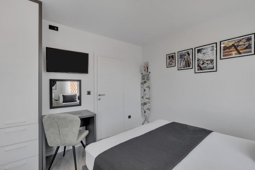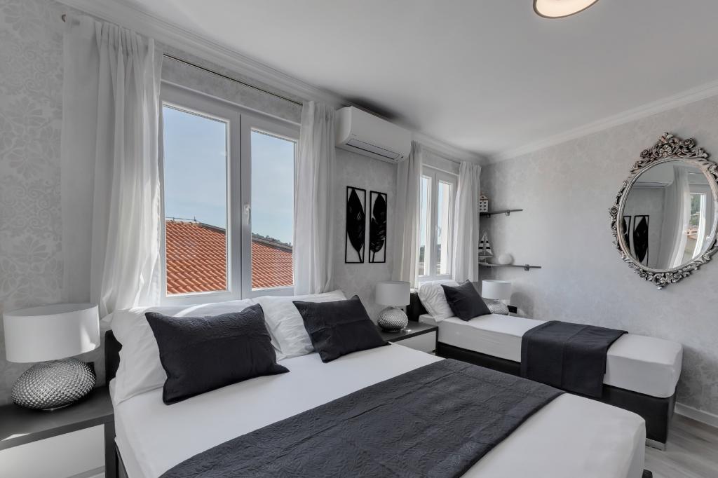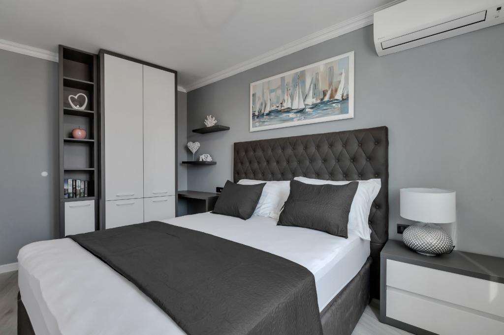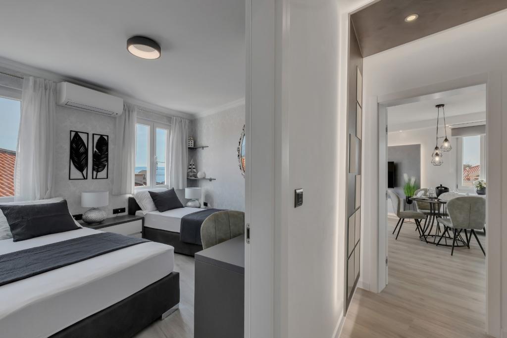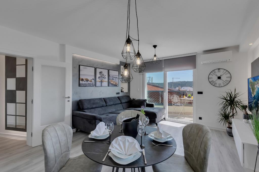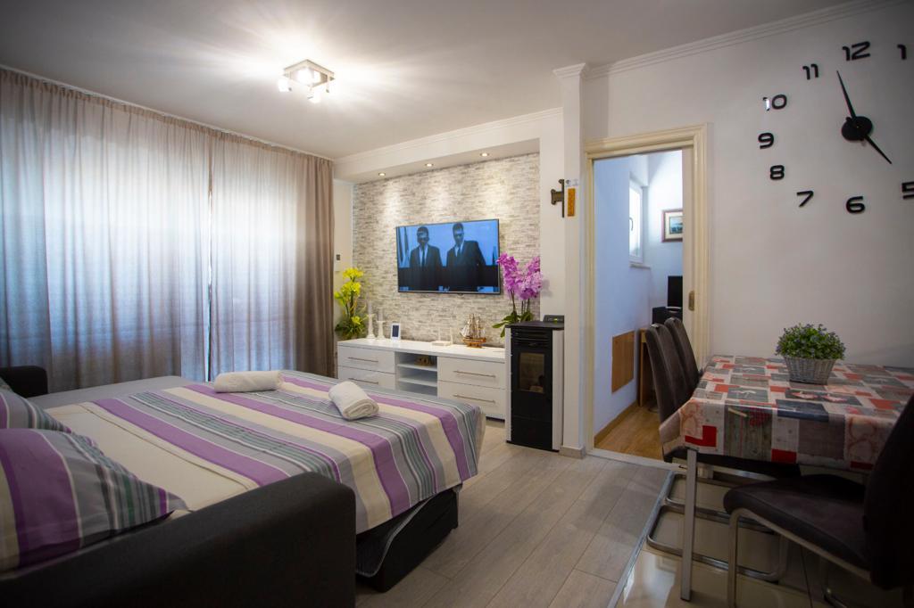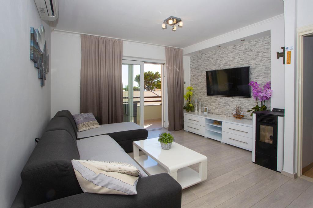 Kompletno ,luksuzno opremljen apartman od 80m2 na 2 katu samostojeće zgrade s parkingom,Apartman se sastoji od 3 sobe spavaće 2 wc kuhinja,dnevni boravak s izlazom na balkon.Apartman je opremljen perilicom suđa,perilicom rublja ,velikim fližderom sa ledilicom ,peć ,mikrovalna peć,kafe aparat,2 lcd tv,dvd,satelit sa 3000 programa,kompijuter sa free internetom,klimom,,u apartmanu može biti smješteno maximalno 8 osoba.Apartman se nalazi u istočnom djelu grada 400 m od plaže Osejava i centra grada,200 m od Sportskog centra i marketa Lidl,4oo u mirnom djelu grada .5 minuta hoda do centra i 10 minuta hoda do glavne plaže