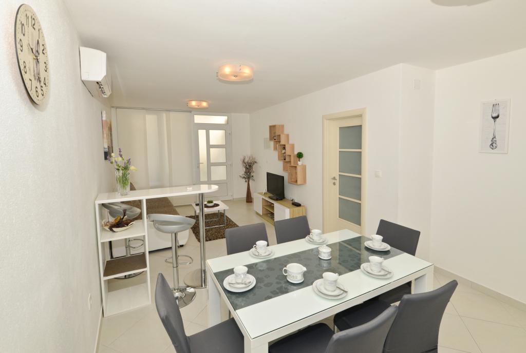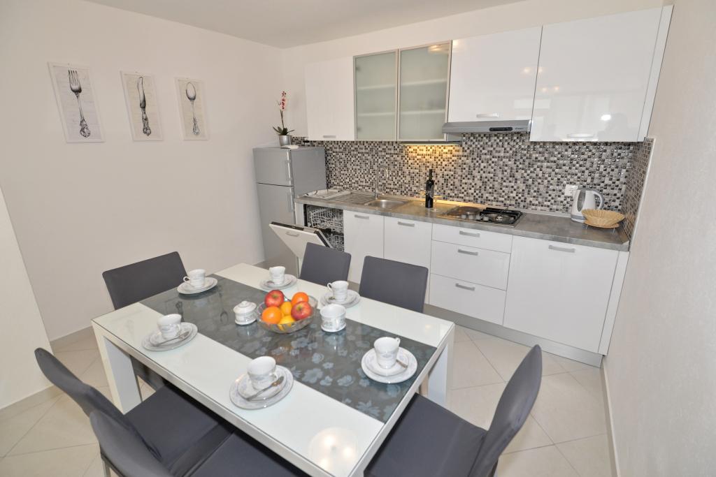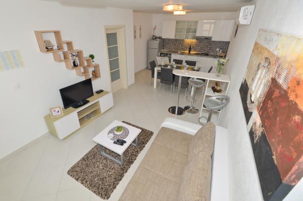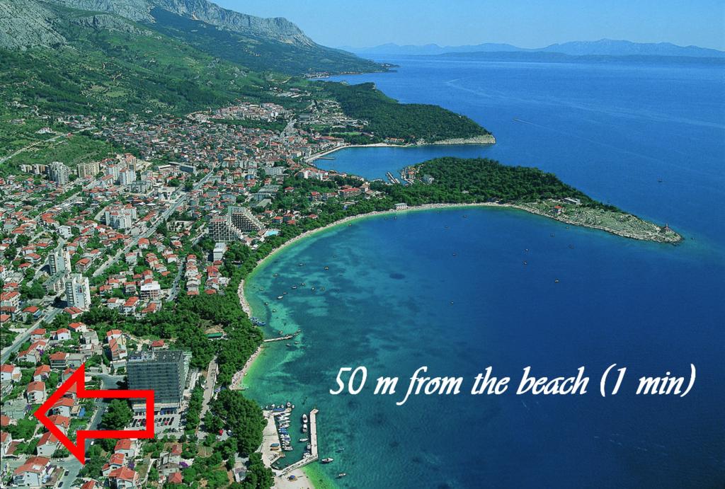 Kompletno i suvremeno opremljeni apartmani i sobe u mirnom predjelu Makarske, smješteni 50m do mora; Objekt se nalazi 10 minuta hoda do centra i 2 min do plaze.