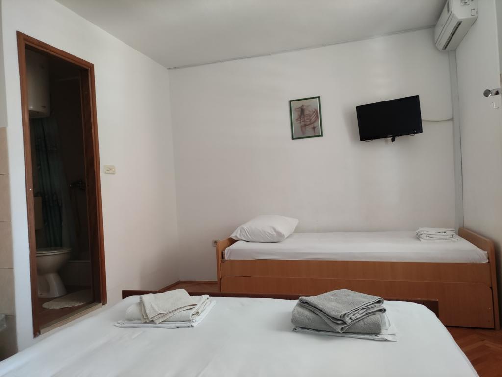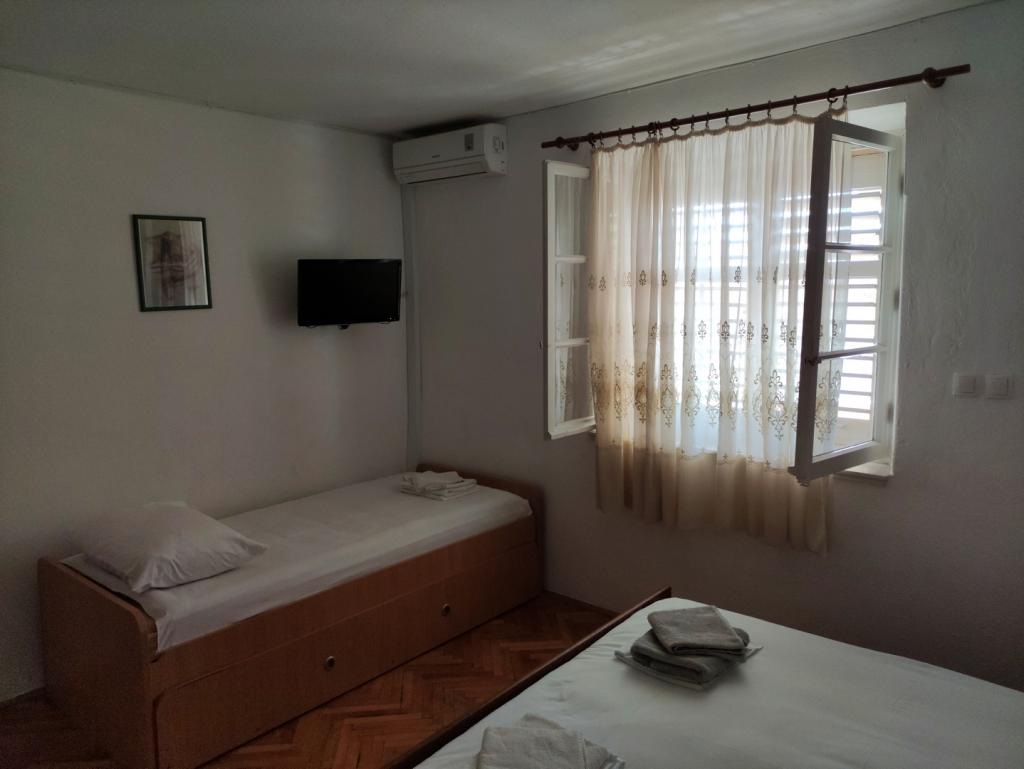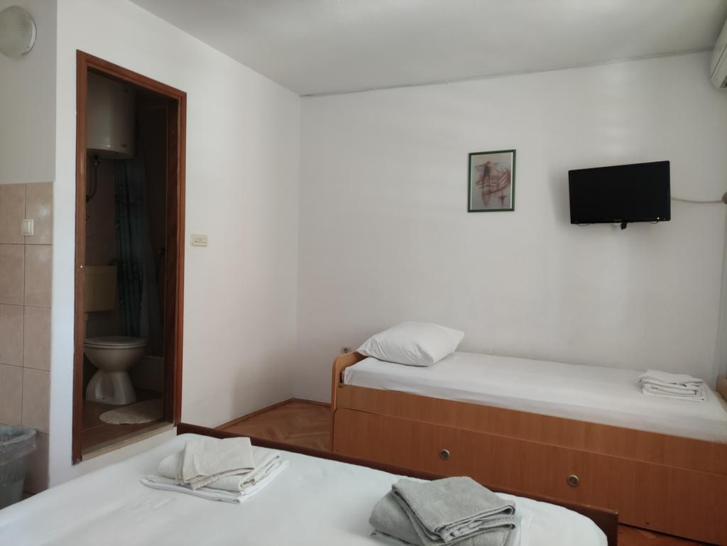 Uredno i prihvatljivo opremljeni apartmani na 1. katu obiteljske kuće, udaljeni 5 minuta hoda do centra grada i 10-15 min hoda do jedne od najljepših plaža na Jadranu. Osiguran privatni parking u dvorištu kuće. Velika zajednička terasa od 40 m2.