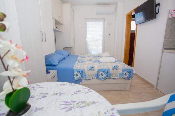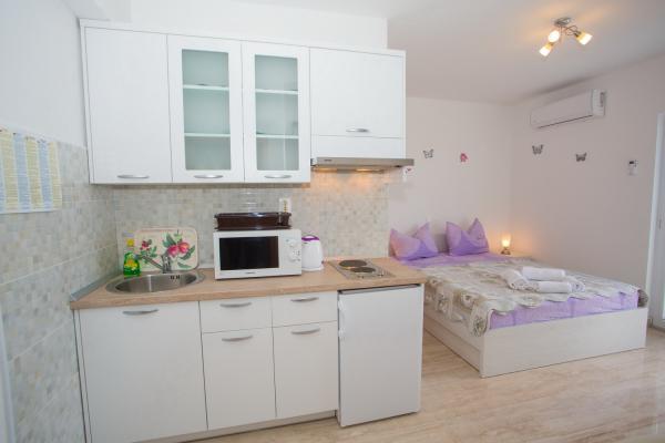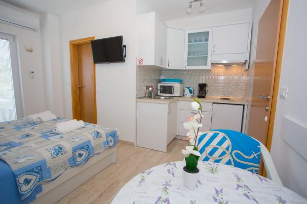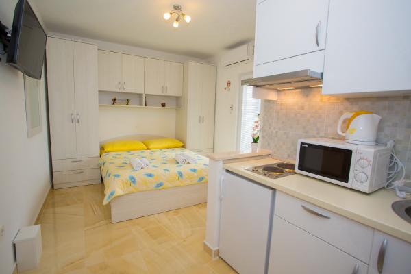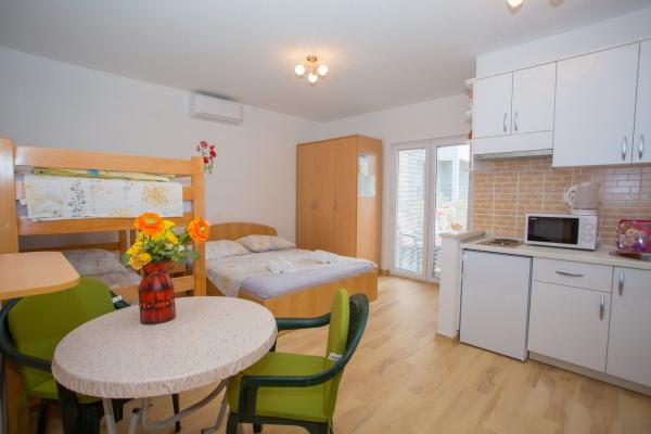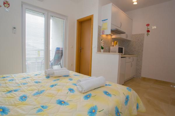 Studio Apartmani Marija se nalaze u mirnom kvartu idealno za odmor. Sa svakog se balkona prostire pogled na more i otoke. Apartmani su udaljeni 7 minuta laganog hoda do plaze. Ako zelite uzivati u odmoru Makarska je idealno mjesto za Vas.