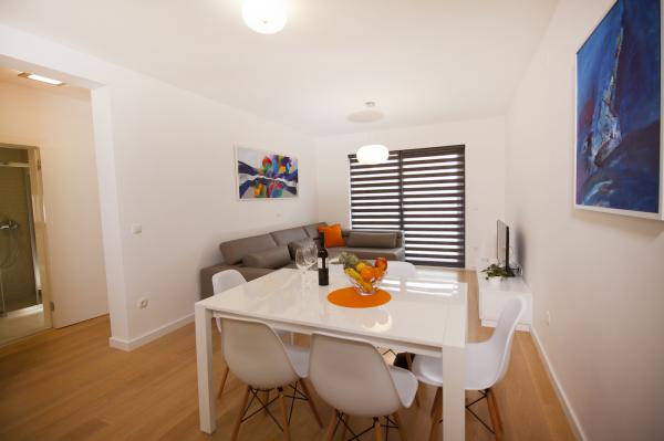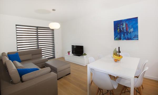 Novi i moderno opremljeni apartmani nalaze se u centru Makarske, samo 50 metara od gradske šetnice i plaže. Makarska Touristik posjeduje podzemnu garažu te parkirna mjesta ispred agencije. Parkirno mjesto iznosi 5 € / dan.