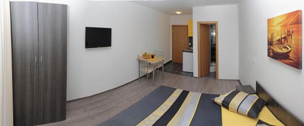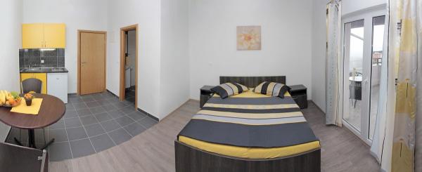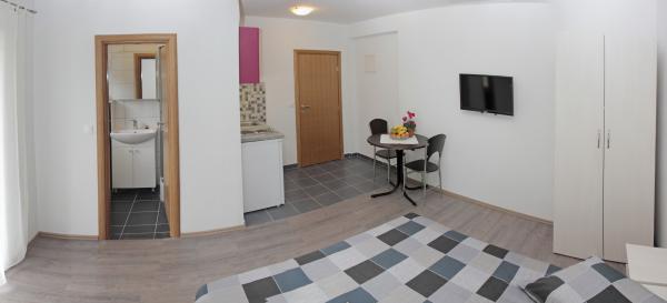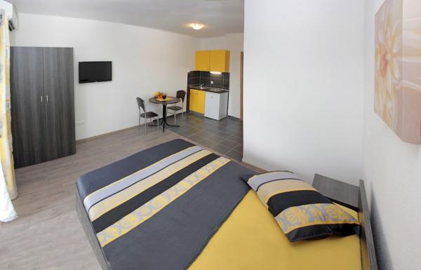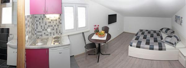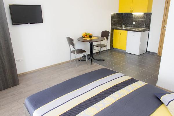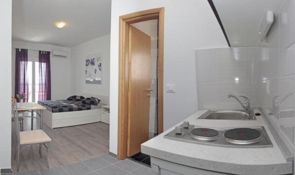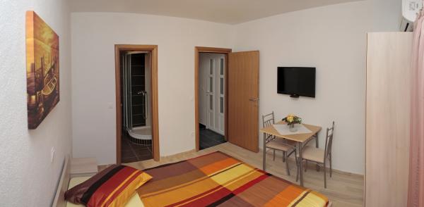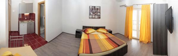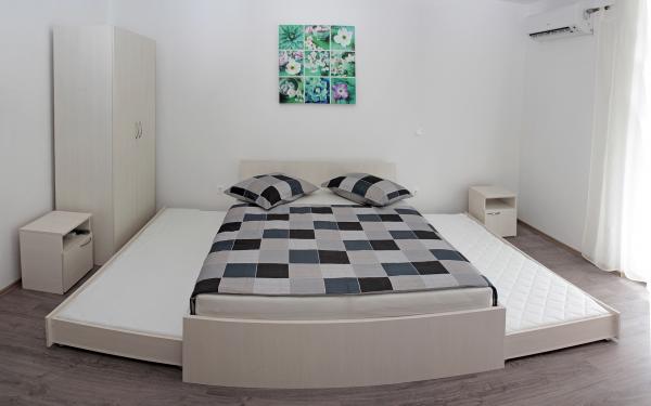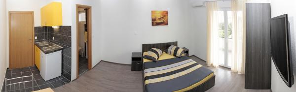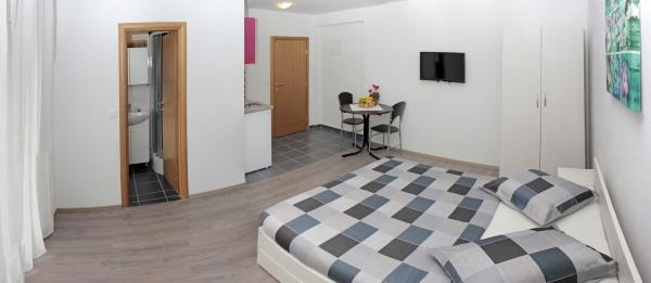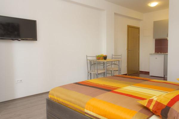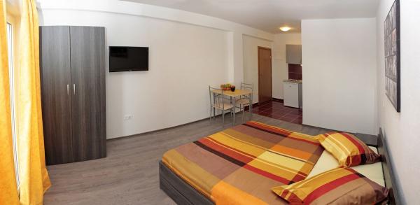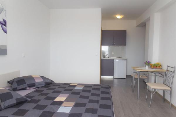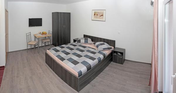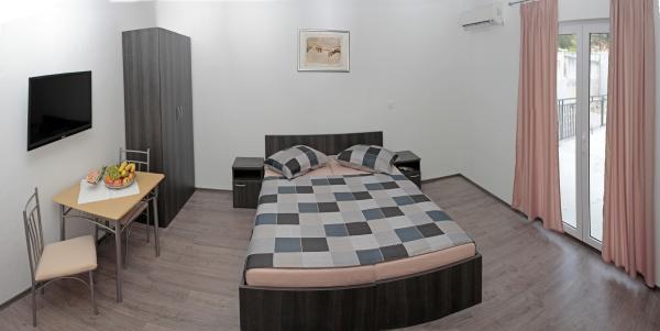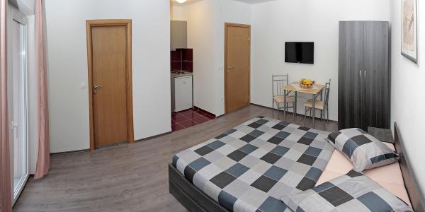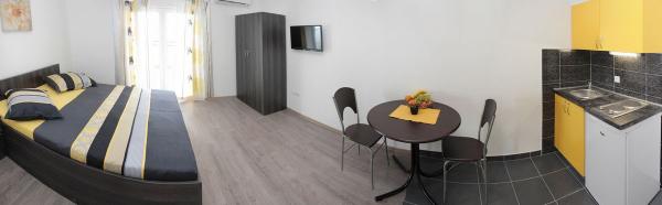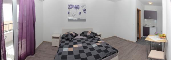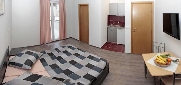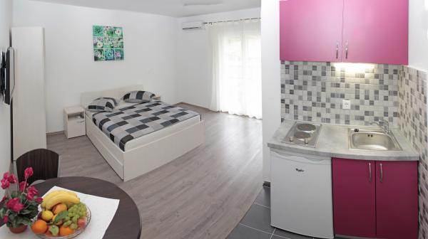 Vila se nalazi na atraktivnoj lokaciji, te se u neposrednoj blizini objekta nalazi više caffe barova, ljekarna, supermarket, 3 trgovine, bankomat, mjenjačnica, crkva, itd. Svi apartmani su novogradnja i svi imaju ukuhinju, klimu, Wi-Fi internet, sat-tv, osigurano parkirno mjesto u sklopu objekta, terasu sa pogledom na more ili Biokovo ili zajednicka terasa, WC/ tuš kabinu/ kupaonski ormarić. Apartmani su predviđei za 2 1 do 8 4 osoba. Nasa Vila nalazi se na atraktivnoj lokaciji, cca. 450m udaljeno od mora (7-8mn. hoda), a cca. 800m od samoga centra (15 min. hoda). Svaki Studio-apartman/ Apartman posjeduje svoje kupatila, terasu, bračni kreveta pomoćne krevete, kuhinju, klime, Sat-TV, stolove i stolice, Wi-Fi Internet, parking.