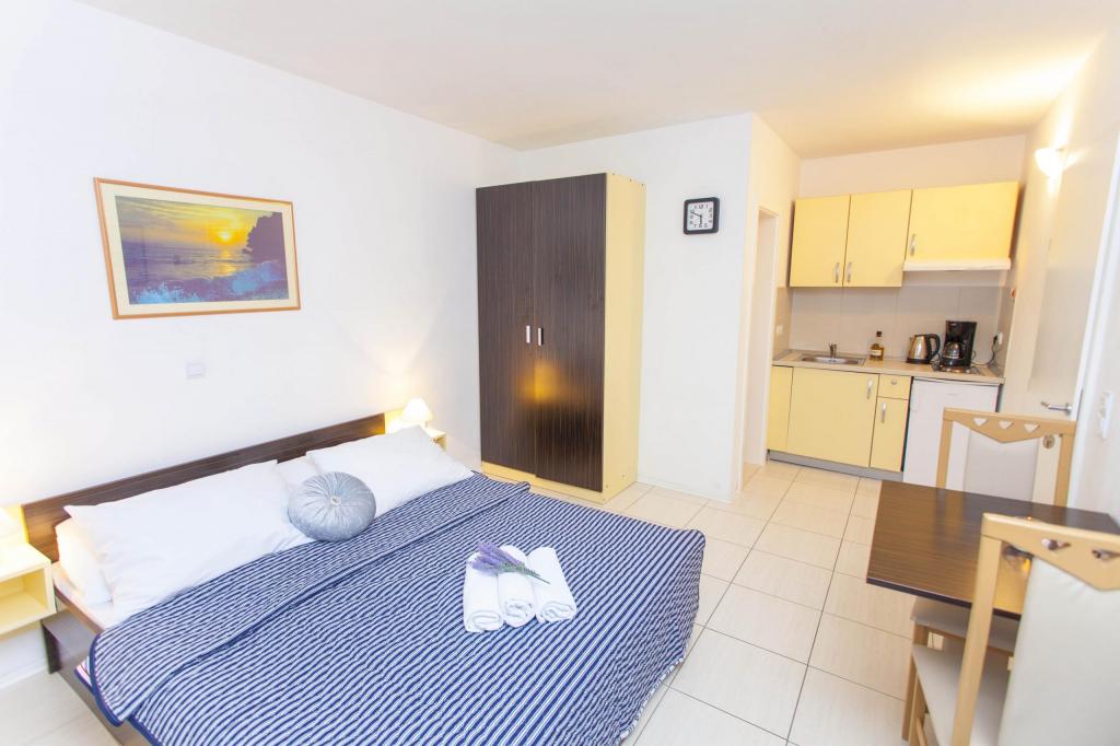 Nudi hotelski smještaj za svoje goste, u koji nije uključena samo hrana. Uljudno osoblje, svakodnevno čišćenje apartmana i dostupne informacije o svemu što Vas zanima, potaknut će Vas da uživate u zasluženom odmoru. Mogućnost najma automobila,prijevoza na aerodrom,organiziranje izleta,što god poželite,nastojiti ćemo Vam omogućiti :)