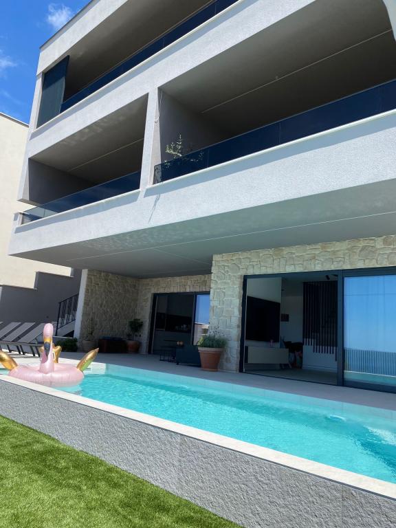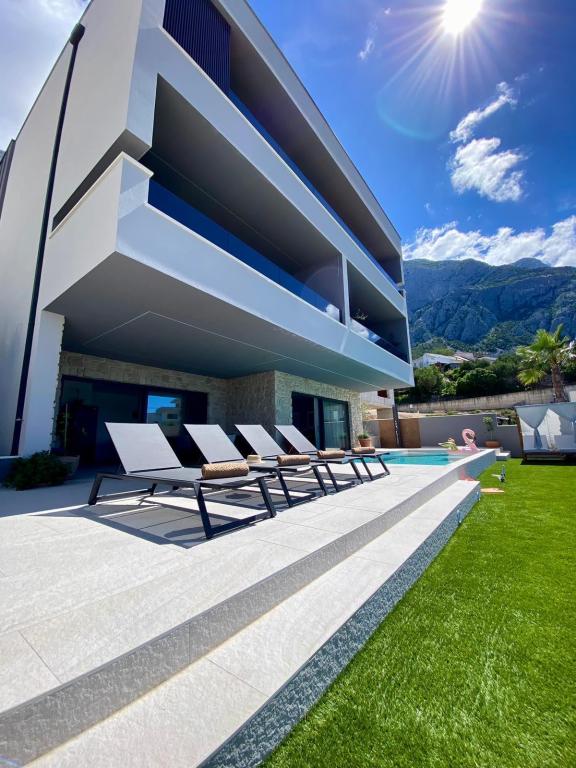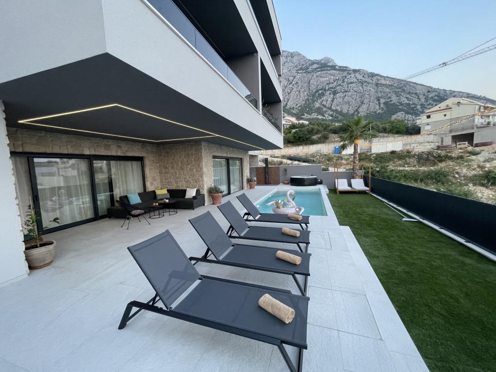 Villa 5 ima smještaj u Makarskoj s besplatnim WiFi-jem i pogledom na more, kao i vanjski bazen, vrt i zajednički salon. Ovaj apartman nudi besplatno privatno parkiralište i zajedničku kuhinju. Ovaj apartman s klima-uređajem sadrži više spavaćih soba (4), dnevnu sobu, potpuno opremljenu kuhinju s hladnjakom i aparatom za kavu te više kupaonica (3) s tušem i besplatnim toaletnim priborom. U ovom apartmanu nude se ručnici i posteljina. Villa 5 nudi smještaj s 4 zvjezdice s hidromasažnom kadom i terasom.
