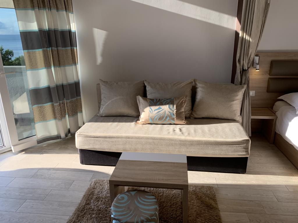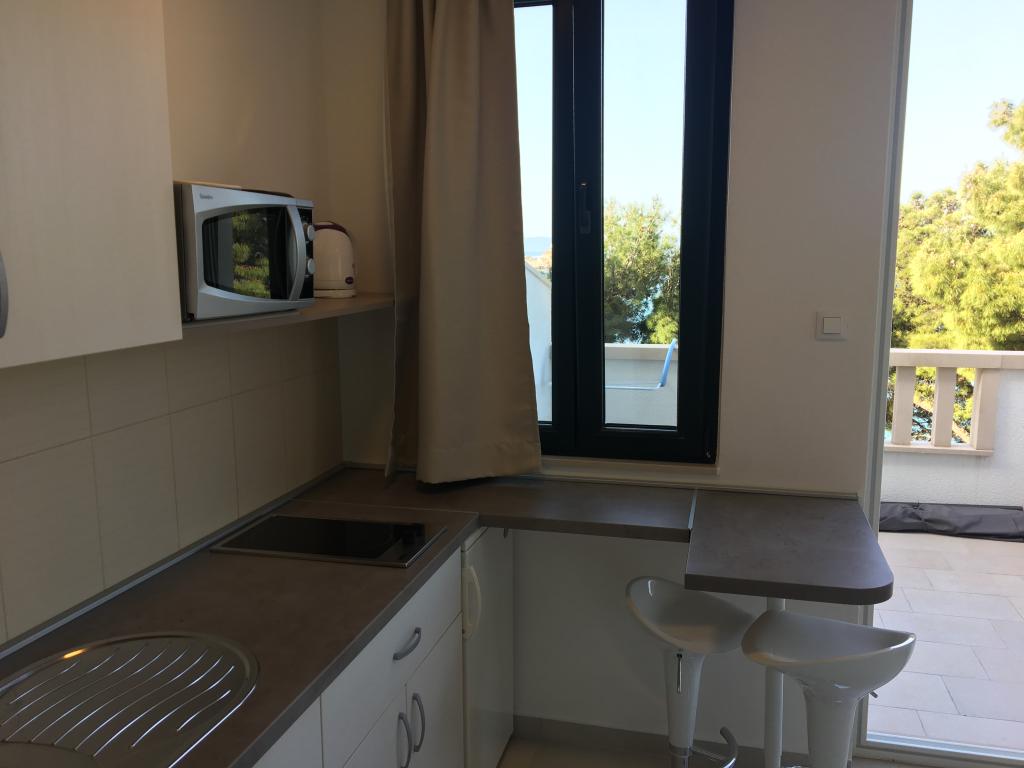 Nudimo vam smještaj u apartmanima opremljenim klimatizacijskim uređajima, satelitskom televizijom, radiom i sefom, te sa jedinstvenim pogledom na more, makarsku plažu i poluotok Sv. Petar. U neposrednoj blizini kuće je i slobodan parking za naše goste.