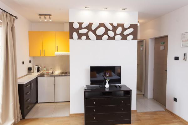 Sve je kao na slikama, studio je uredan, prijatnog mirisa, divno uredjen, posjeduje sve, od klime, TV-a, sefa, potpuno opremljene kuhinje, do ručnika, fena za kosu. U neposrednoj blizini plaže, marketa i autobusnog kolodvora. Vlasnik je izuzetno prijatan i uvijek na raspolaganju. Ja sam prezadovoljna, nemam niti jednu zamjerku.