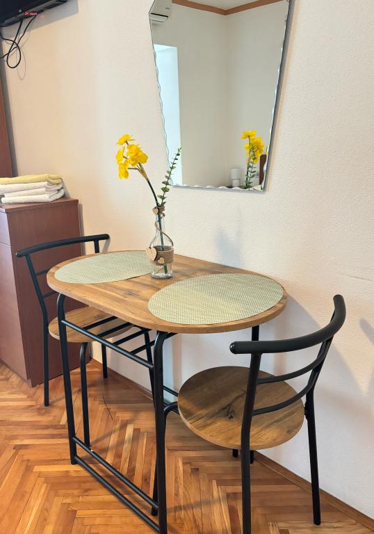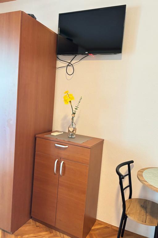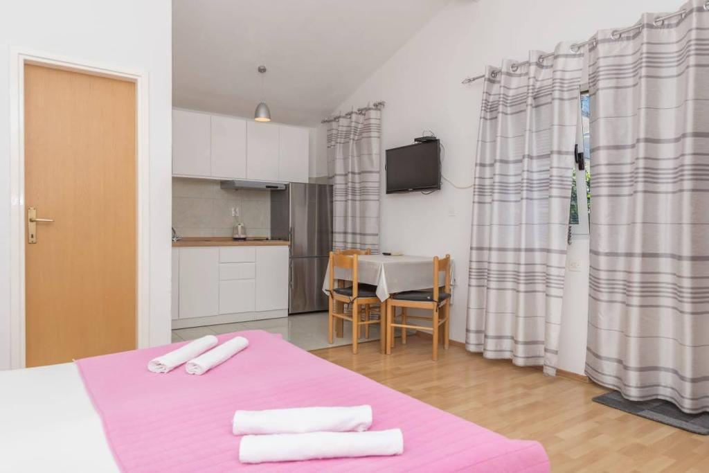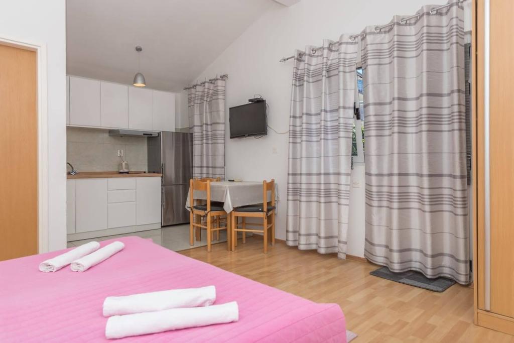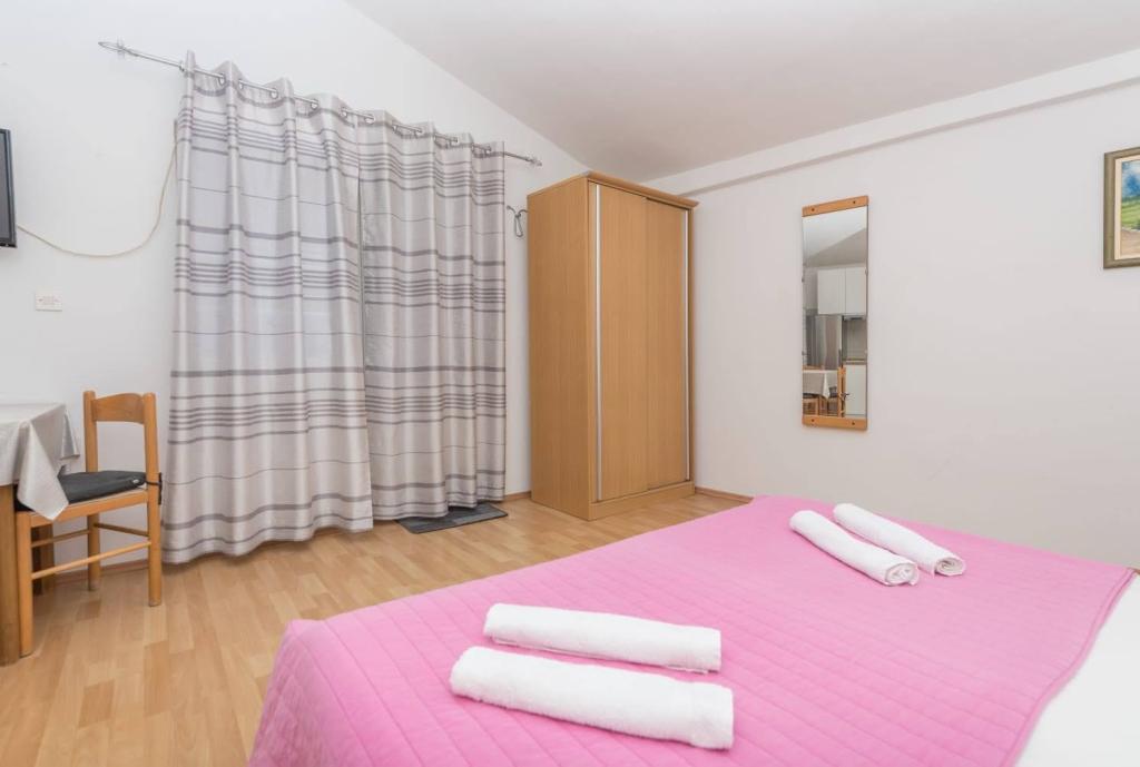 Apartmani se nalaze 150m od plaže i restorana centar 500m, privatni parking za svako auto jedino ne omogucujemo ulaske izlaske sa autom, klima, wifi, tv, terasa sa pogledom na more, diskont 20 m. U ponudi imamo više app studio app 2+1, studio app 2+2, te jednosobni app 3+2. Za sve informacije kontaktirajte iznajmljivaca. Hvala Andrea Roso.