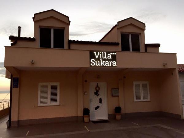 Poštovani gosti, dobrodošli! Villa Sukara smještena je iznad Makarske, na samim obroncima planine Biokovo. Okružuje je staro naselje Makar nastalo u antičkim vremenima po kojemu je i sam grad dobio ime. Iz svih soba naše ville pruža se veličanstven pogled na Brački kanal, te prekrasne južnodalmatinske otoke. Izlasci, baš kao i zalasci sunca nad Jadranskim morem bez imalo skromnosti su poseban doživljaj koji upotpunjuje svježi i mirisni mediteranski zrak koji se rasprostire cijelim krajolikom. Članovi naše obitelji dočekat će Vas nasmiješeni, s toplinom u srcu i lijepom riječju na usnama. Srdačno ćemo Vam otvoriti vrata naše male konobe koju krasi mnoštvo antikviteta i iz koje se širi miris domaćih proizvoda koje smo sami spravili. Na naše gostoprimstvo uvijek možete računati, a Vaš mir i zadovoljstvo naš su cilj. Ukoliko imate pitanja o našoj villi, slobodno nam se obratite. Stojimo Vam na raspolaganju i radujemo se Vašem dolasku. Lijep pozdrav! Obitelj Sukara