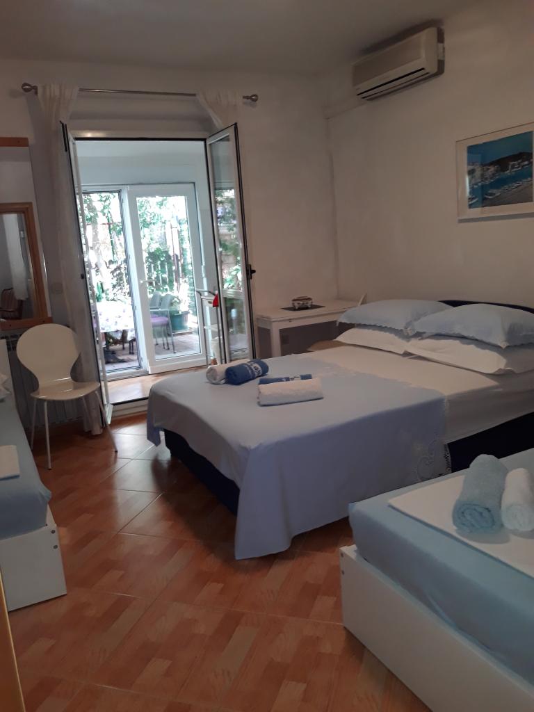 Nalazi se u mirnom predjelu 50 m udaljeno od najljepše plaže u Makarskoj sa prirodnim hladom.