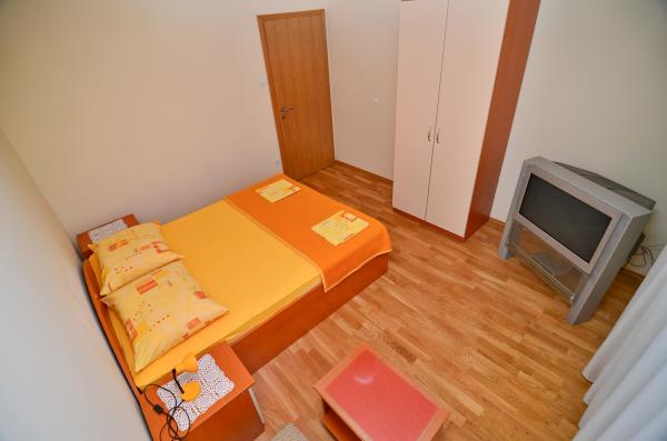 Kompletno i suvremeno opremljeni apartmani u mirnom zapadnom dijelu grada. Objekt se nalazi manje od 5 minuta hoda do plaže i 10 minuta od centra grada. Svi apartmani su prostrani i imaju odvojene spavaće sobe od devnog dijela i kuhinje. Posebno je prostran apartman za 6 osoba koji uz 3 spavaće sobe ima 2 kupatila, veliku kuhinju i veliku dnevnu sobu te 2 klima uređaja