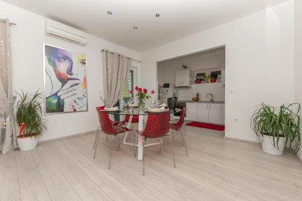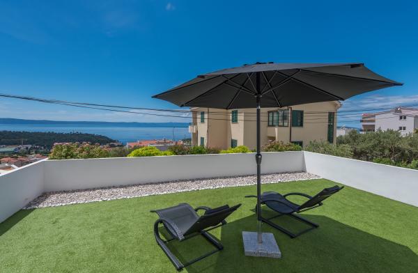 Kuća se nalazi u mirnom dijelu Makarske, put naselja Makar. Kompletno namještena kuća ima tri sobe, dvije kupaonice, blagovaonicu, kuhinju i dnevni boravak te veliku terasu i vrt sa koje imate pogled na cijelu Makarsku. Vazno je napomenuti da imate parking za četiri automobila i da se u kuci nalazite sami. Objekt se nalazi 15 minuta hoda do centra te 15 minuta hoda do plaze. .