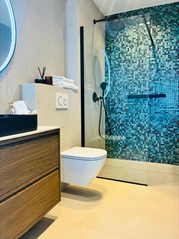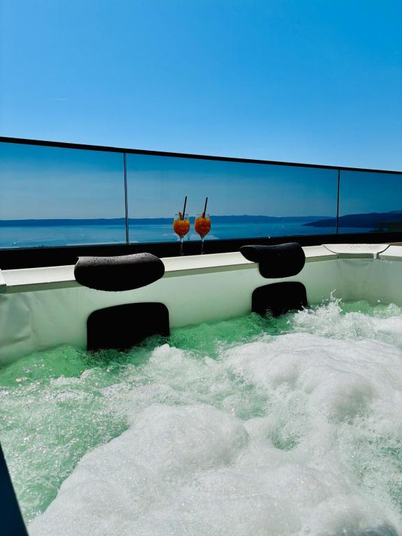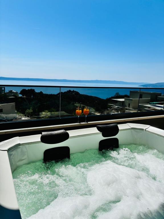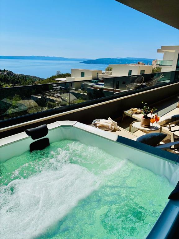 Villa 5 ima smještaj u Makarskoj s besplatnim WiFi-jem i pogledom na more, kao i vanjski bazen, vrt i zajednički salon. Ovaj apartman nudi besplatno privatno parkiralište i zajedničku kuhinju. Ovaj apartman s klima-uređajem sadrži više spavaćih soba (4), dnevnu sobu, potpuno opremljenu kuhinju s hladnjakom i aparatom za kavu te više kupaonica (3) s tušem i besplatnim toaletnim priborom. U ovom apartmanu nude se ručnici i posteljina. Villa 5 nudi smještaj s 4 zvjezdice s hidromasažnom kadom i terasom.