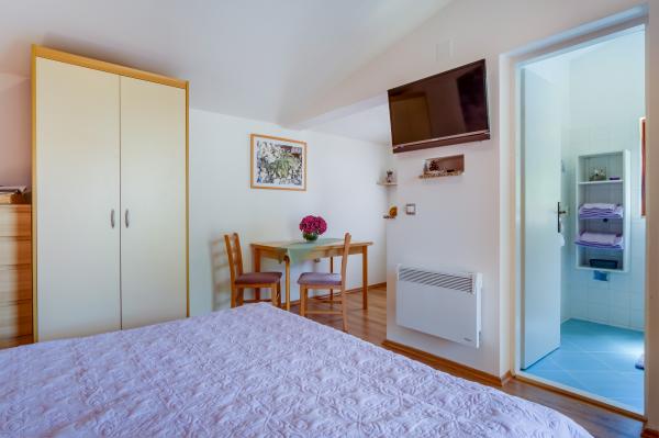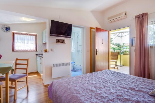 Kompletno opremljen apartman Arty, kategoriziran s 4 zvjezdice namijenjen je isključivo smještaju 2 osoba. Zaseban je objekt uz kuću u kojoj žive domaćini. Nalazi se u mirnoj zoni u blizini nekoliko plaža i idealan je za odmor. Od najbližih plaža je udaljen samo nekoliko minuta, a nešto dalje se nalazi još nekoliko prekrasnih plaža. U apartman je moguće dovesti i kućnog ljubimca uz nadoplatu od 10 eura. Piće dobrodošlice je uključeno u cijenu. Apartman ima osim opremljene kuhinje, trpezarije, spavaonice i kupaonice i svoj vlastiti parking, mjesto za bicikle, roštilj samo za goste, WI-FI internet bez nadoplate, klima uređaj, grijanje, tv, satelitsku antenu, ... U kuhinji svaki gost dobiva: novu spužvicu i deterdžent za pranje posuđa, kuhinjske krpe, . .U kuhinji se još nalazi: toster, aparat za kavu, kuhalo za vodu, štapni mikser,... Želimo Vam dobrodošlicu i ugodan odmor u našem apartmanu!