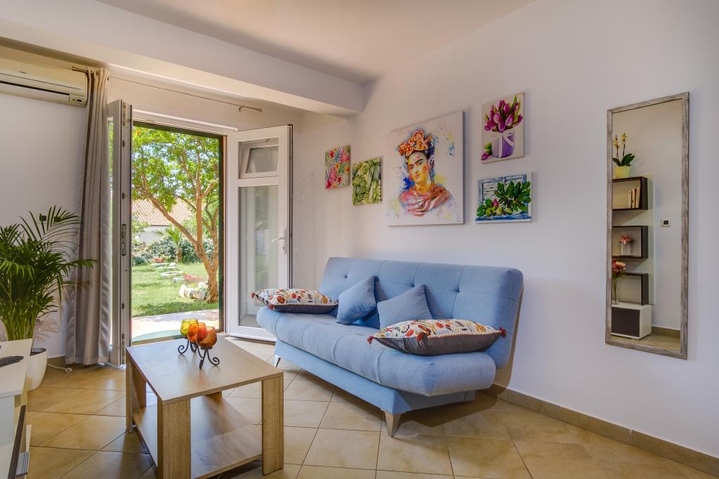 Kompletno i suvremeno opremljen apartman u mirnom predjelu, okružen prekrasnim miomirisnim mediteranskim vrtom, na 5 minuta od plaže, restorana i centra! Svi ostali sadržaji, trgovine, kafići, taxi, katamaran, također se nalaze u neposrednoj blizini apartmana!
