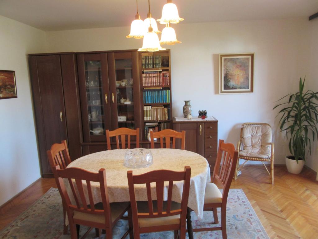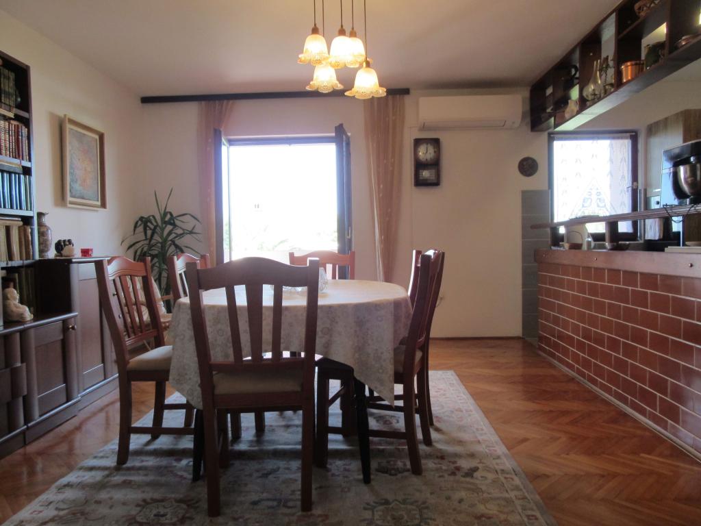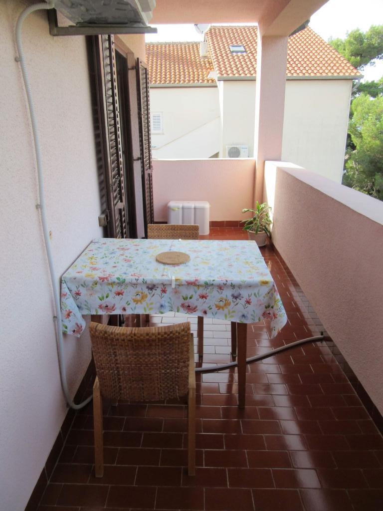 Kompletno i suvremeno opremljeni dvosobni apartman na prvom katu obiteljske kuće: dvije spavaće sobe, blagovaonica, kuhinja, kupaonica, dnevni boravak, dva balkona (pogled na more). Objekt se nalazi u mirnom predjelu, u blizini plaža, marketa, restorana i ostale gradske infrastrukture. U dvorištu kuće moguće je zadržavanje i druženje za velikim stolom s klupama, a gosti mogu koristiti i roštilj. Jedno mjesto za parkiranje ispred kuće.