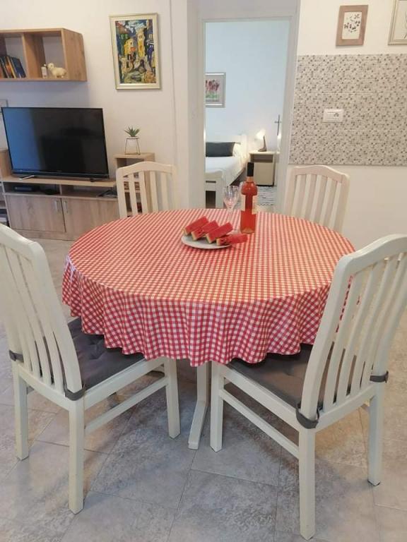 Turistička pristojba je uključena u cijenu.Odlično uređen apartman za komotni smještaj, prostran i ugodan prostor koji pruža i privatnost. Dodatna prednost je terasa u sklopu apartmana sa zidanom kamenom peći za pripremu roštilja i ugodno druženje uz vatru. Blizina centra Malog Lošinja. Vlasnica ugodna i komunikativna. Zbog svega navedeno produžilo smo boravak u odnosu na prvi plan. Svakako preporuka.