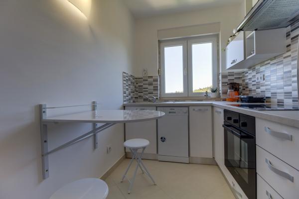 Novi, suvremeno opremljeni apartman nalazi se između dvije uvale, Valdarke i Sv. Martin koji je ujedno i najstariji dio grada. To je vrlo miran kvart a vrlo blizu centra, cca 800m. Plaža do koje se dolazi betoniranim putićem udaljena je 100m. Naravno u blizini ima i drugih plaža do koje se se može stići pješice ili kraćom vožnjom. Apartman se nalazi na katu kuće a sastoji se od sobe, kuhinje i kupaonice ispred koje je komoda za previjanje bebe a u ponudi je i dječji krevetić. Kuhinja je moderno opremljena sa perilicom posuđa, hladnjakom sa zamrzivačem, pećnicom, aparatom za kavu i svim potrebnim kuhinjskim posuđem. Kupaonica sa tuš kabinom i perilicom rublja. Soba je opremljena stolom sa dvije foteljice za opuštanje i sjedećom garniturom koja se razvlači u ležaj 150x200cm te ormarom. Moguće je organizirati dodatni ležaj. Prostor je klimatiziran, opremljen televizorom i wi-fi internetom. Po prethodnom dogovoru dopušteno je dovesti uredne kućne ljubimce.