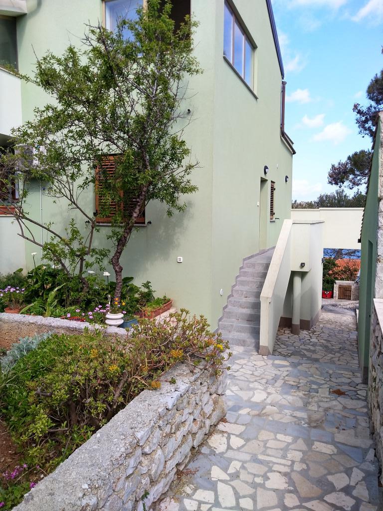 Apartman je smješten u mirnom naselju, samo 50 m od mora, gdje Vam nudimo spavanje i buđenje uz šum mora i zriku cvrčaka. Apartman je prikladan za obitelj s djecom, dva para ili četiri prijatelja koji se žele odmoriti od gradske gužve. U apartmanu su dvije spavaće sobe, jedna kupaonica sa perilicom rublja, kompletno opremljena kuhinja i manji dnevni boravak, te terasu sa pogledom na more. U apartmanu imate posteljinu, ručnike, kuhinjske krpe, toaletni papir, tablete za perilicu suđa, sredstva za čišćenje, sredstva za dezinfekciju... U blizini apartmana nalaze se dvije plaže udaljene oko 1-3 minute hoda. Ali bila bi zaista velika šteta boraviti na otoku, a ne posjetiti ostale predivne plaže sa prirodnim hladom koje su od našeg apartmana udaljene svega 3-5 min vožnje autom Do centra grada je 10 min. lagane šetnje šetnicom uz more.
