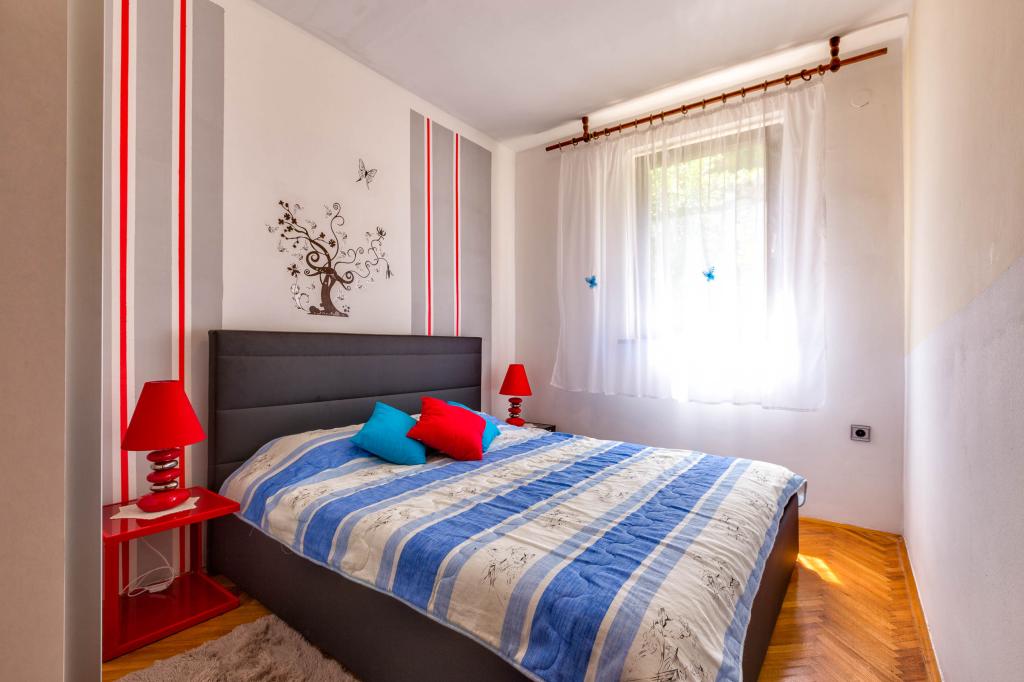 Apartmani se nalaze u mirnoj četvti, blizu je plaža, dućan, igralište za djecu, a do centra grada ima 10 min, pješice.Svaki apartman ima osigurano jedno parking mjesto ispred apartmana. Smjena gostiju u srpnju i kolovozu je moguca samo subotom,zbog drugih obaveza. Psi su dobrobosli uz naplatu od 8€ po danu.