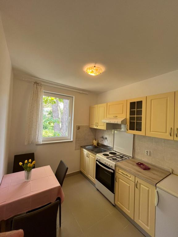 Objekt se nalazi u mirnoj zoni okružen borovom šumom. Blizina plaže oko 10 minuta laganog hoda i 5 minuta od centra. U dvorištu objekta nalazi se parkiralište.