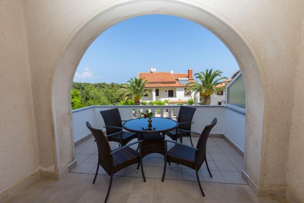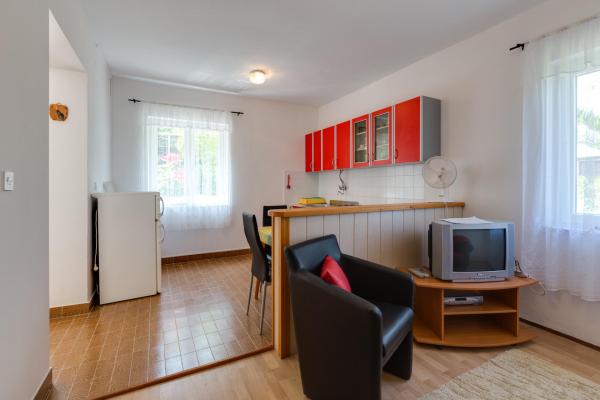 Apartmani se nalaze u novom nasalju Zagazinjine. Plaža je samo nekoliko minuta hoda od kuće. More je vrlo čisto i uz plažu se nalazi borova šuma. Postoji mogućnost veza za barku u uvali blizu objekta. U dvorištu se nalazi veliki kameni roštilj, koji je na raspolaganju gostima. Okoliš je uredan sa puno zelenila.