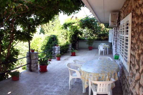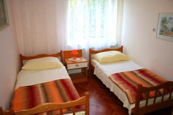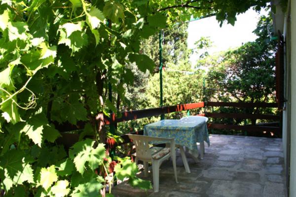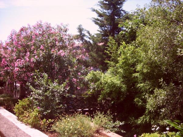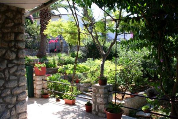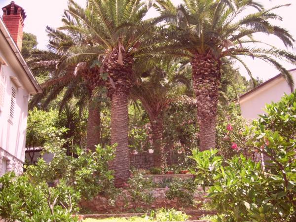 Dva apartmana, manji (za 2 osobe) i veći (za 6-7 osoba), podno borove šume, usred lijepog, velikog dvorišta, svaki sa terasom okruženom zelenilom. More i plaža su samo na 100 metara od kuće, blizina centra grada...ljubazni domaćini Vas očekuju. Provedite svoj odmor iz snova na Otoku dupina! Apartmani se iznajmljuju tijekom cijele godine!