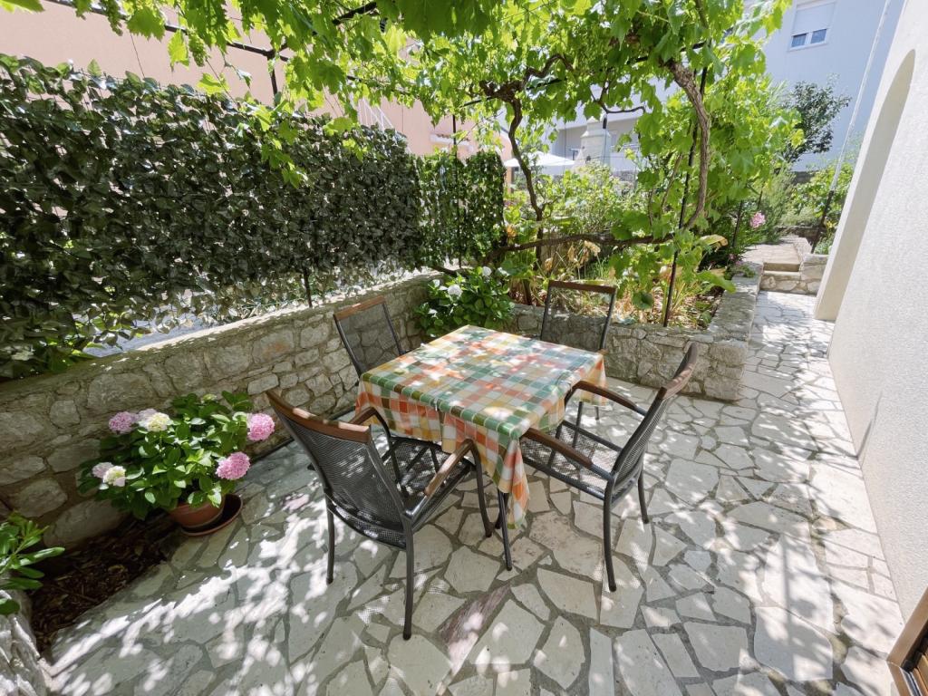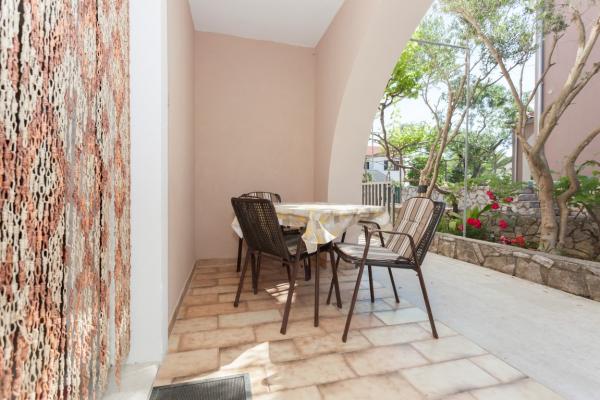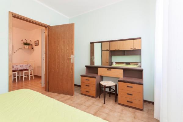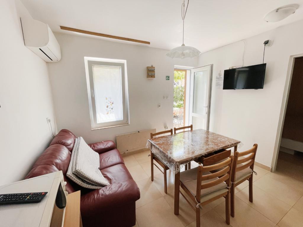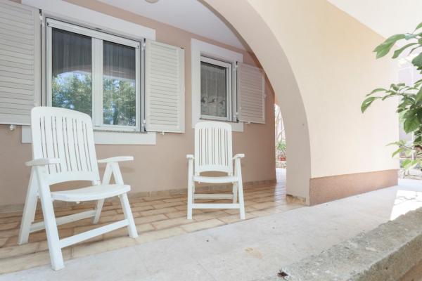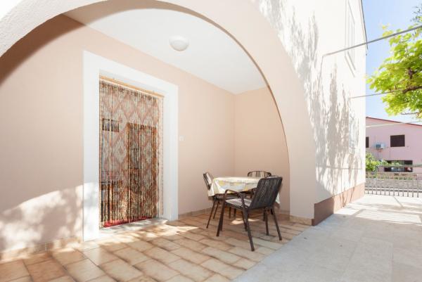 Apartmani se nalaze u prizemlju obiteljske kuće i na raspolaganju Vam je terasa u hladu. Sa stražnje strane apartmana je moguće spremiti sportske rekvizite poput bicikla ili rekvizite za plažu. Apartmani su opremljeni aparatom za filter kavu, kuhalom za kavu (espresso), mikrovalnom pećnicom, satelitskom TV, tosterom, glačalom i daskom za glačanje...Gostima je na raspolaganju bežični internet i klima uređaj (uključeno u cijenu). Najbliža plaža je udaljena manje od 2 minute laganog hoda (10 minuta hoda do službene plaže za kućne ljubimce), 2 minute hoda do marketa, pekare, restorana, a do centra grada između 5 i 10 minuta hoda.