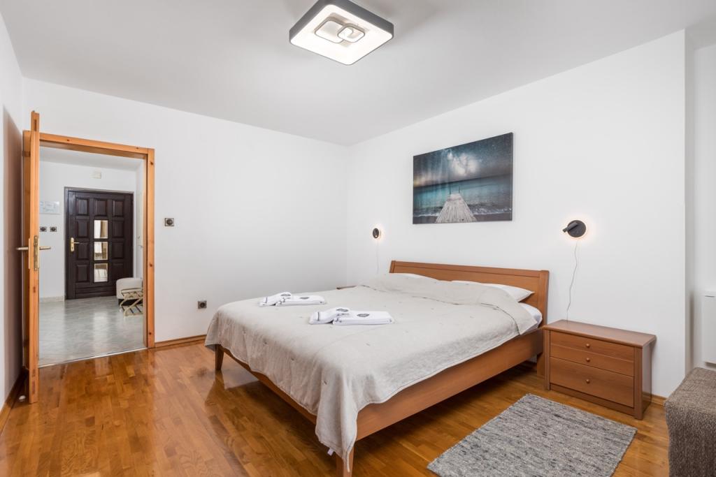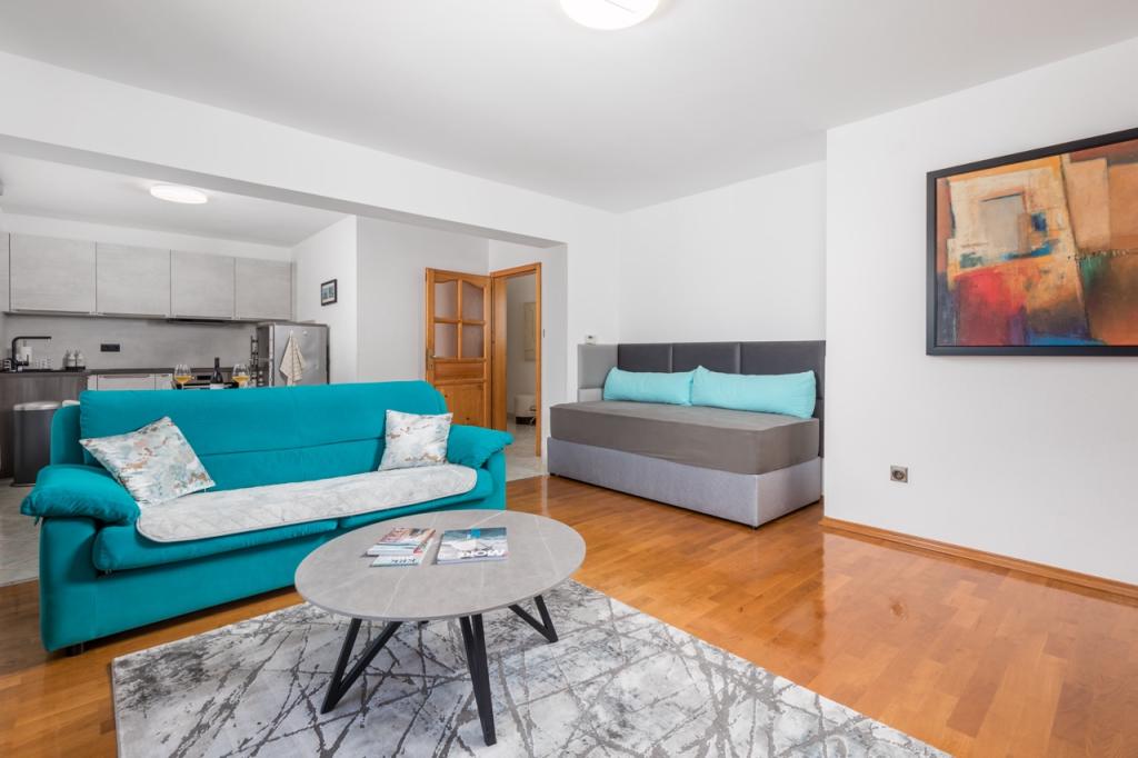 Pročitaj više Smještajne jediniceNavedene cijene su za dvije osobe. Postoji i mogućnost rezervacije za tri osobe uz nadoplatu za treću osobu i to na normalnom krevetu koji se nalazi u dnevnoj sobi. Pri rezervaciji za tri osobe molimo vas da pošaljete upit i naglasite da trebate rezervaciju za tri osobe preko web-portala. Kod smjene gostiju poželjno je da gosti napuste apartman do 10 sati a dolazak novih gostiju je iza 14 sati.