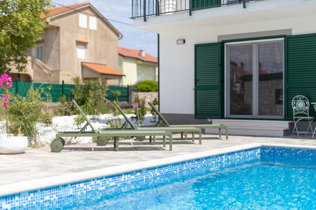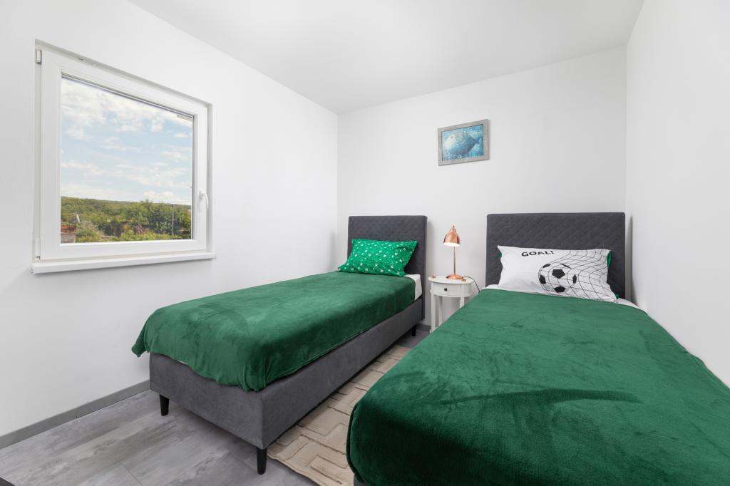Apartman s bazenom Na prvom katu Vile okružene zelenilom i vrtom nalazi se u mjestu Milovčići blizu Malinske. Mjesto je mirno i savršeno za odmor i opuštanje. Gosti imaju na raspolaganju privatni bazen, terasu, balkon i dva privatna parkirna mjesta.