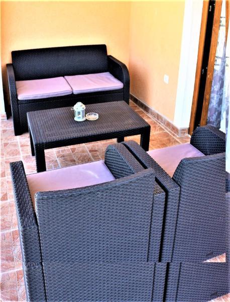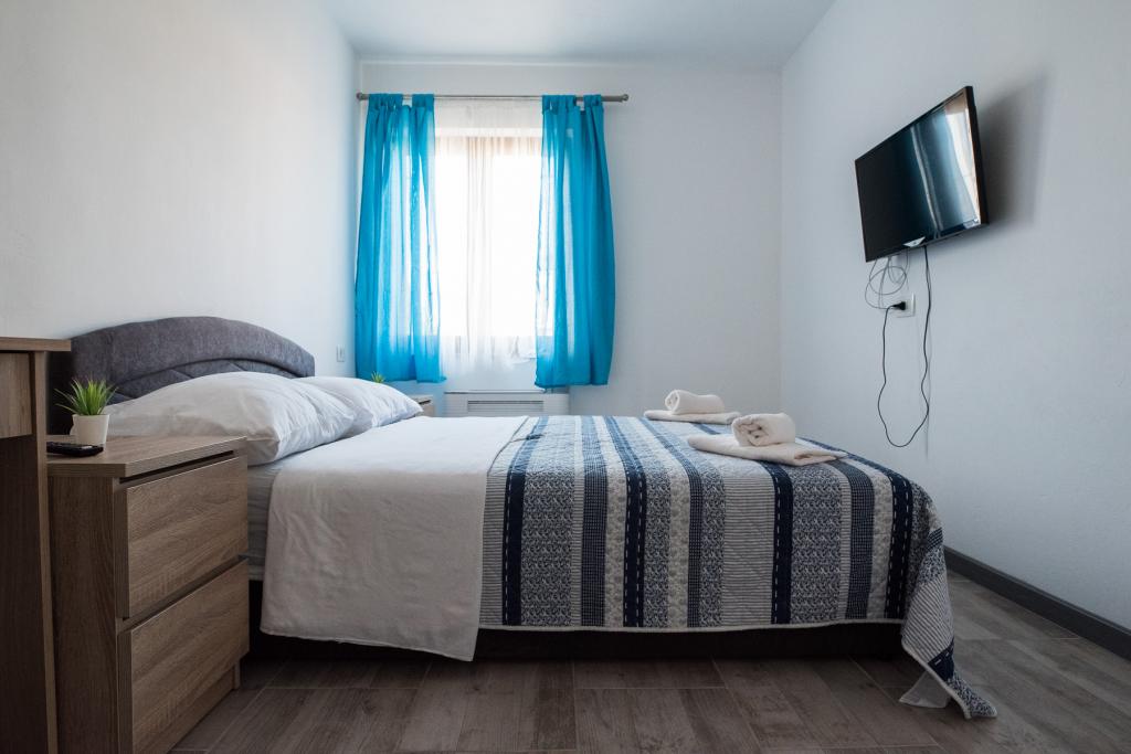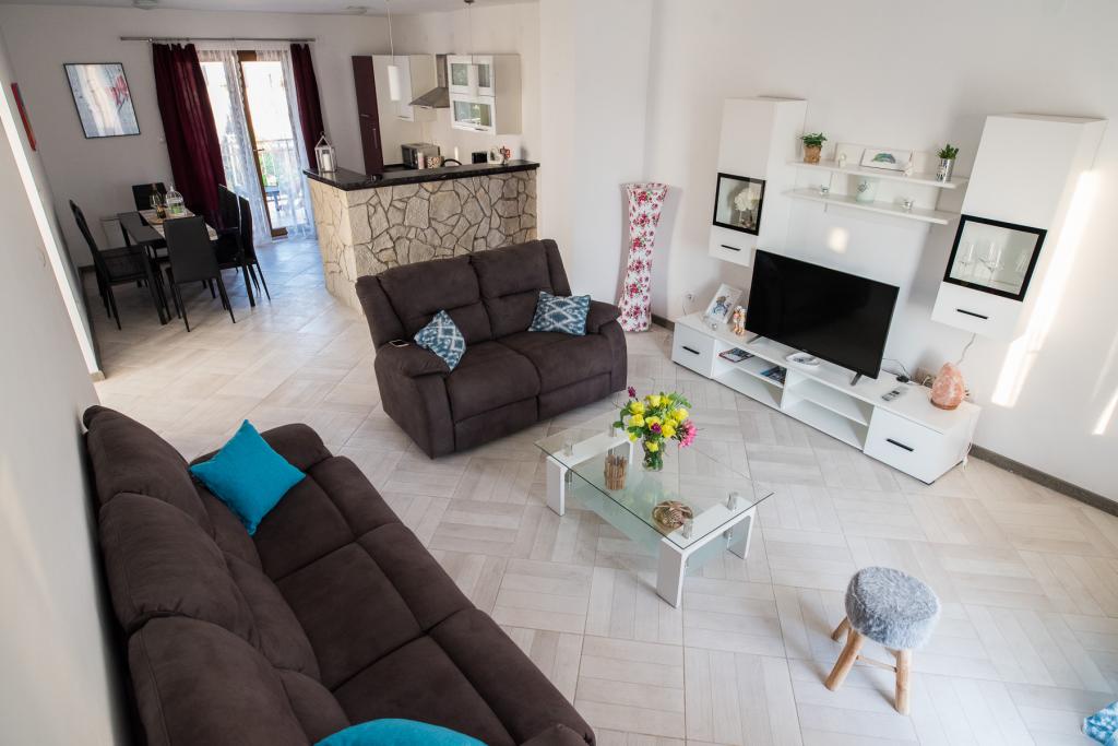 Moderno opremljen novi apartman u mirnom mjestu, nedaleko od svih većih mjesta i gradova na otoku Krku koji nude mnoštvo različitih sadržaja: restorana, kafića, beach barova, zabavnih sadržaja za djecu i slično. Apartman ima mogućnost smještaja osam osoba dodatno jedno malo dijete, budući da posjedujemo dječji krevetić. Dućan se nalazi 20 m od apartmana, kao i nogometno i košarkaško igralište. Apartman je nov, ima 4 velike spavaće sobe, svaku sa svojom televizijom i klimom. Svaka prostorija u apartmanu ima svoj klimatski uređaj. Ima dvije kompletno opremljene kupaonice, kuhinju, dnevni boravak, dva balkona i vlastiti parking. Nekoliko kilometara od apartmana nalaze se mnoge različite plaže: šljunčane, pješčane, stjenovite, betonske pa i plaža s ljekovitim blatom. Nalazi se u srcu otoka Krka te nas je vrlo jednostavno za pronaći, cca 15 km od mosta i 12 km od aerodroma.
