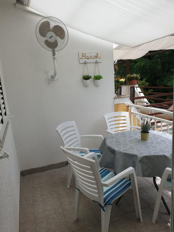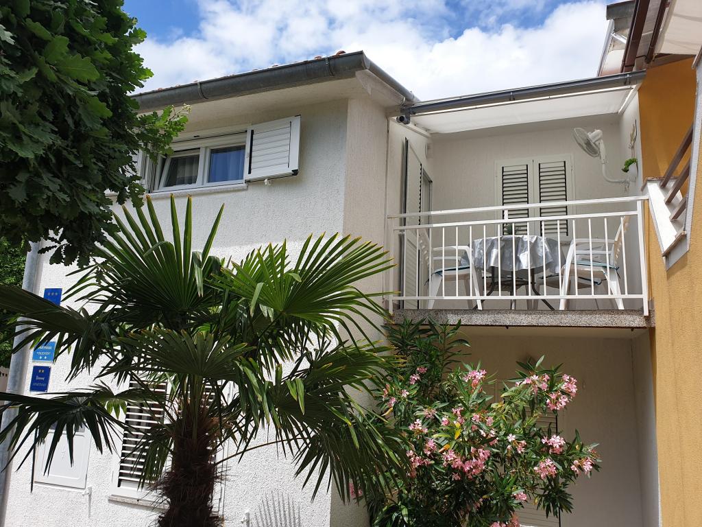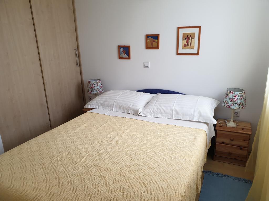 Dvokrevetni apartman. AP 2+1 sa jednim pomoćnim ležajem nalazi se na 1. katu obiteljske kuće. Pomoćni ležaj je u naravi trosjed koji se razvlačenjem pretvara u bračni krevet. Apartman ima poseban ulaz, svoju malu natkrivenu terasu, parkirališno mjesto, klima uređaj, TV uređaj i drugu opremu za ugodan boravak tročlane obitelji. Površina apartmana je 30 m2 Kuća je smještena na kraju slijepe ulice - nema prometa. Na dvorištu bogatom zelenilom nalazi se i roštilj koje gosti mogu koristiti. Udaljenost od prve uređene plaže sa tuševima je oko 400 m, a to znači oko 8 minuta šetnje. Ukoliko volite šetati otkrit ćete raznolike uvale i plaže. Cijela je Malinska zapravo uređena plaža koju valja istražiti.