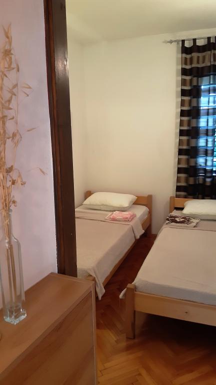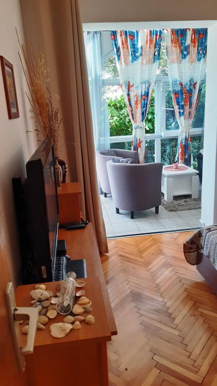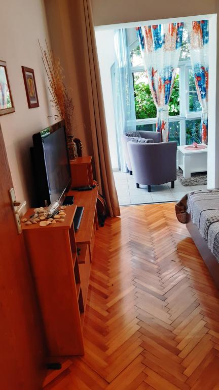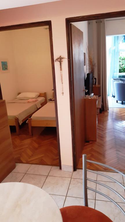 Turistička pristojba je uključena u cijenu. Šaljemo pismenu potvrdu rezervacije (voucher)Veliki apartman ima funkcionalan raspored i dobro je opremljen svim sadržajima koji osiguravaju ugodan boravak. Hladnjak ima solidno veliki pretinac za zamrzavanje. Klima uređaj se nalazi iznad ulaznih vrata i sposoban je hladiti sve prostorije, ali obično ga nije potrebno koristiti, jer se apartman nalazi u prizemlju i dovoljno je hladan. Uz apartman se nalazi parkirno mjesto koje se nalazi u mirnoj slijepoj ulici. Ako unajmite apartman na 2 tjedna umjesto na jedan, ostvarujete 5% popusta na cijenu. Plaža i obližnji restorani udaljeni su oko 10 minuta hoda. Preporučujem najam.