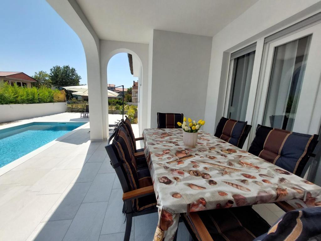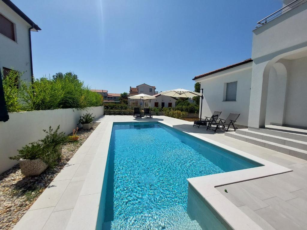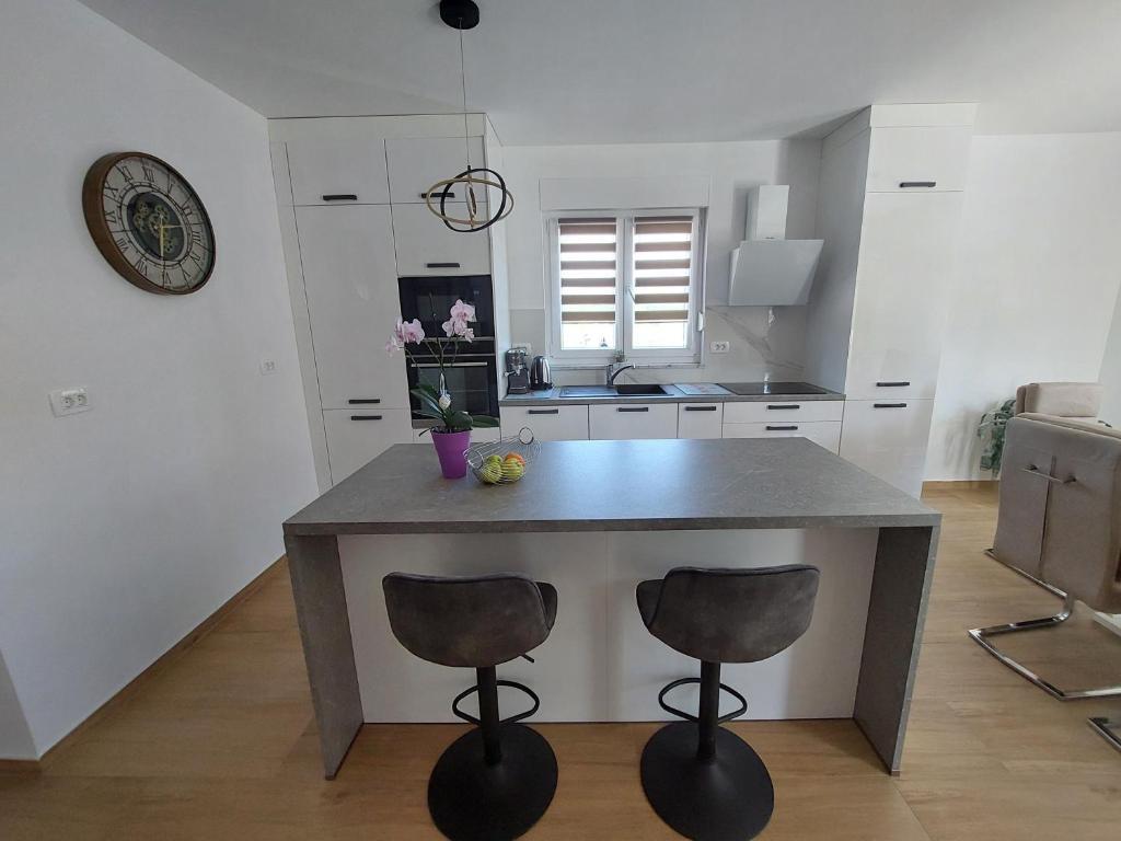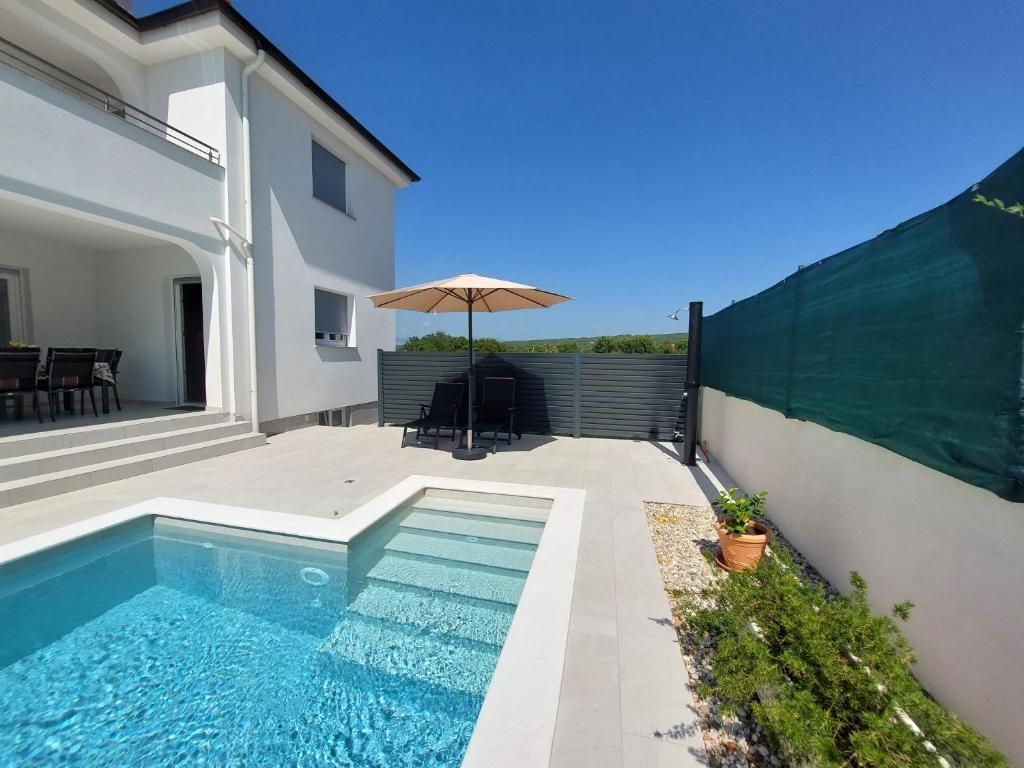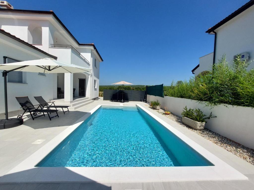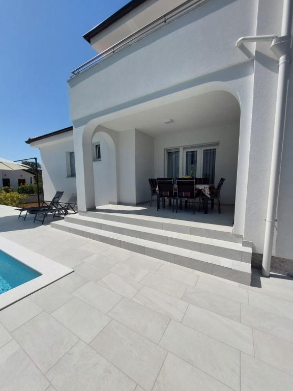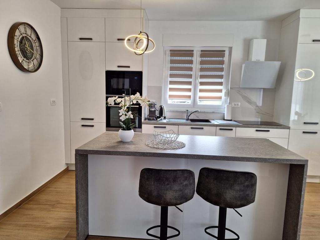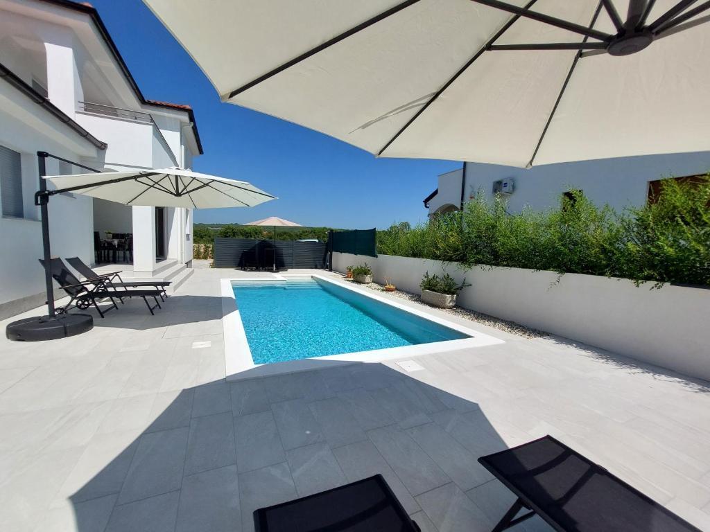Kompletno i moderno opremljen dvosobni apartman sa bazenom u mirnom predjelu, smješten u Sv. Antonu nedaleko od Malinske . Veličine 110m2. Vrhunski smještaj za obitelj ili goste koji žele ugodan i miran odmor . Dvije spavaće sobe sa vlastitom kupaonom. Moguć smještaj do 6 osoba. Zatvoreno parkirno mjesto. Klimatiziran. Bazen koriste samo gosti apartmana.