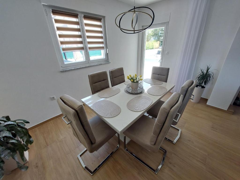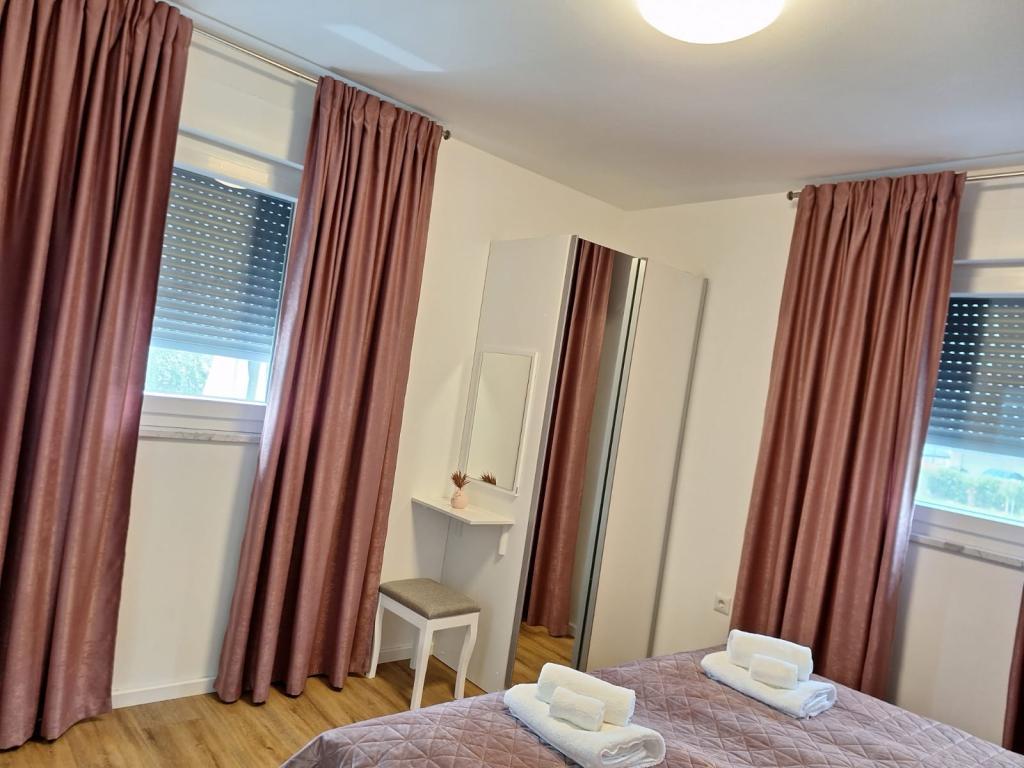 Pročitaj više Smještajne jedinicePlaćanje smještaja je moguće po dogovoru . Na račun ili prilikom dolaska u smještaj. Akontacija se plaća prije dolaska u iznosu od 20% od vrijednosti rezervacije. Vrijeme dolaska u apartman je do 20h. Vrijeme odlaska iz apartmana je do 10h. Termin 1.6-15.7 i 1.9-20.9 5 noći . Termin 15.07-30.08. 6 noći. Iznos od 300€ se plača po dolasku kao garancija u slučaju štete. Iznos od 300€ se vraća po odlasku ako nije učinjena šteta u apartmanu Djeca do 3 godine starosti ne plaćaju smještaj Djeca starija od tri godine plaćaju cijenu kao odrasle osobe. Čišćenje apartmana se plača 100€. Nije uračunato u standardnoj cijeni apartmana. Plaća se kao dodatni trošak na standardnu cijenu apartmana prilikom dolaska u apartman. Boravak kućnih ljubimaca nije dozvoljen Poštovanje kućnog reda je obavezno. Organiziranje zabava i ekstremna buka nije dozvoljena. Pušenje u apartmanu nije dozvoljeno