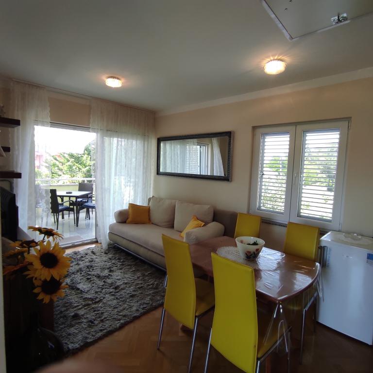 Svaka pohvala domaćici, dočekala nas je vrlo ljubazno i ponudila piće dobrodošlice, a opet nije bila nametljiva. Nakon odjave iz apartmana imali smo kvar na automobilu, domaćica je ponudila dodatni ostanak u apartmanu po potrebi i čak nam je pomogla u pronalasku mehaničara Na tome smo neizmjerno zahvalni Inače apartman u kojem smo boravili je vrlo uredan i čist, jako dobro opremljen sa svim potrepštinama za boravak na odmoru Pozicija apartmana je u mirnom dijelu naselja, a opet dovoljno blizu da se pješice može do plaže, trgovine, kafića i sličnog Preporučujem svakome