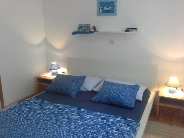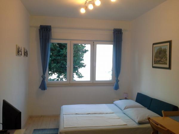 Kuca sa velikim vrtom i parkingom - smjestena na setnici direktno uz more u prekrasnom zaljevu. Iznajmljuju se tri vrlo lijepa, komforna apartmana - svaki ima odvojenu terasu s otvorenim pogledom na more. Izuzetna pozicija - mir i zelenilo - lijepe sljuncano-pjescane plaze. Trgovine i restorani-wellnes - sport-sve u blizini. Lijevo i desno od nase kuce - uvale cca 2-3 km prekrasne setnice uz more. Govorimo strane jezike i trudimo se vec dugi niz godina biti gostu maksimalno na usluzi.