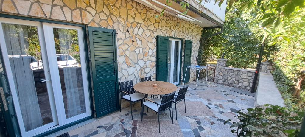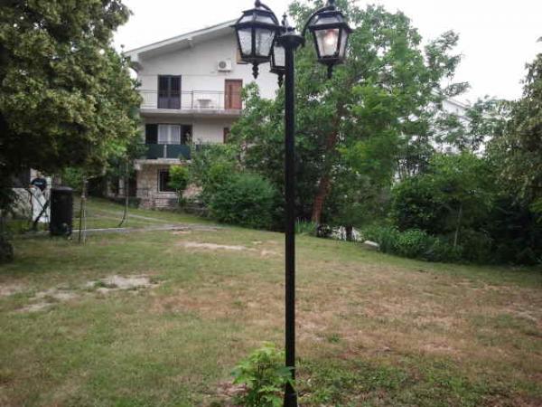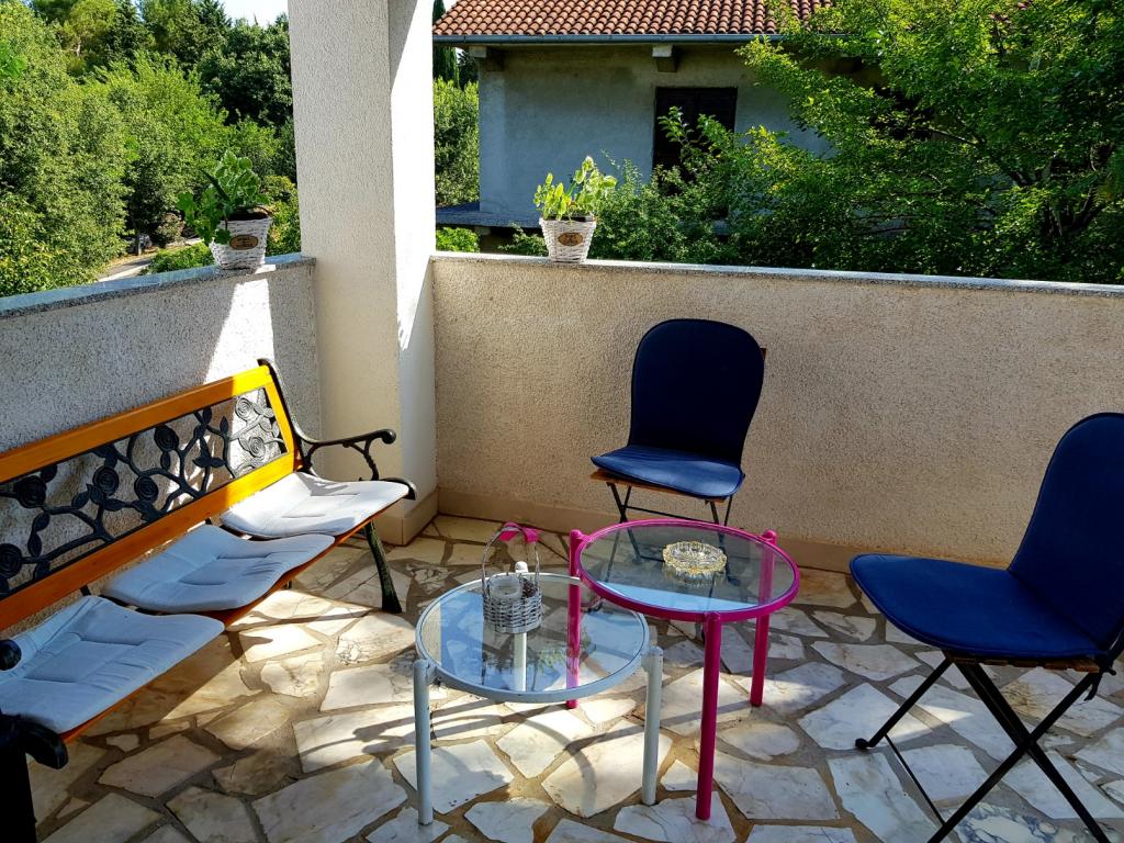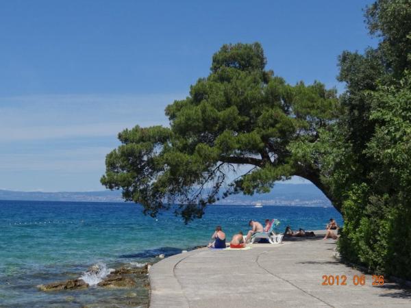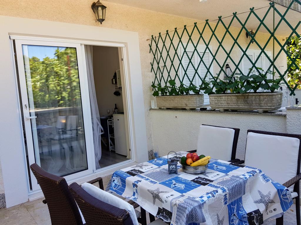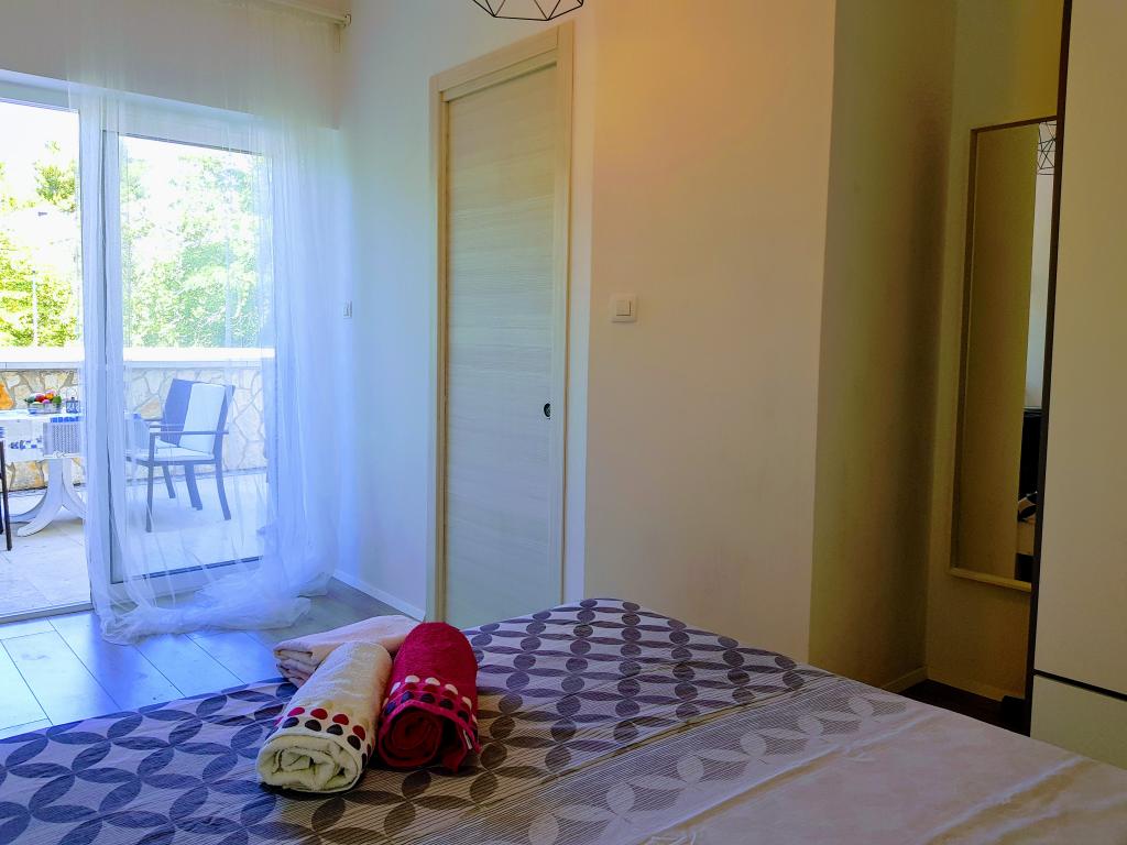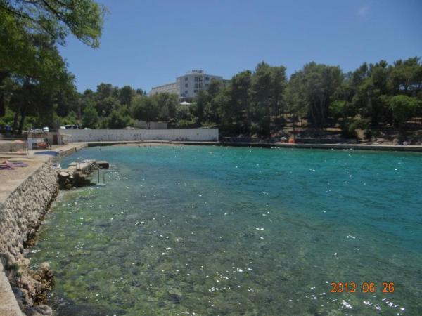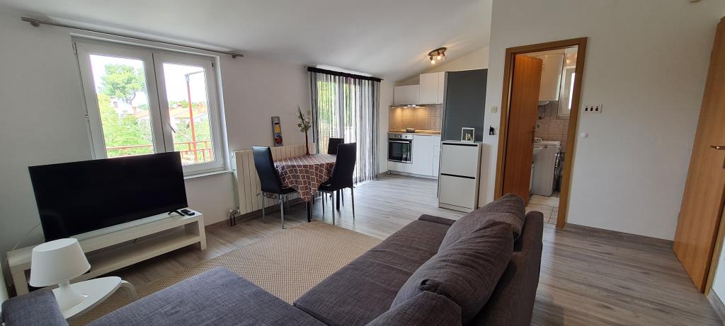 Apartmani, sobe i bungalov, okruženi zelenilom šume primorskog bora, u mirnoj ulici iznad centra. Kuća se nalazi 3 minute hoda do rive i manje od 10 minuta hoda do gradske plaže. U blizini se nalaze dućan i restoran. Parking za automobile nalazi se u dvorištu. Roštilj terasa s ljetnom kuhinjom namijenjena je svim gostima kuće te nudi roštilj na drveni ugljen i plinski roštilj.