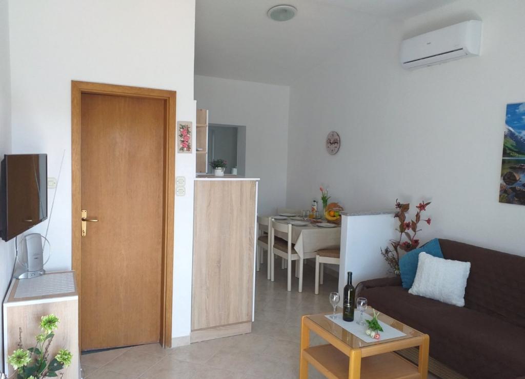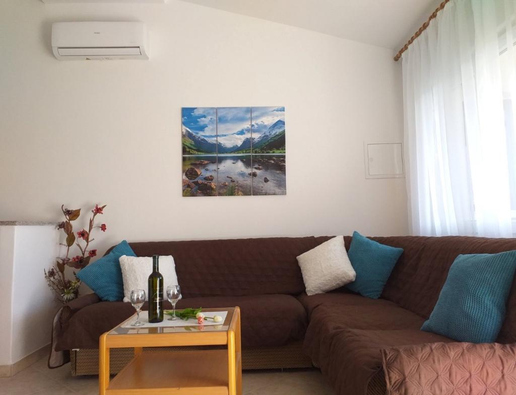 Apartman se nalazi 1500 metara od mora i plaža, do centra je 1600 metara. Apartman se nalazi na mirnoj lokaciji. Nudimo domaće vino, rakije, maslinovo ulje, sir, povrće i voće iz vrta. Mogućnost organizacije izleta.